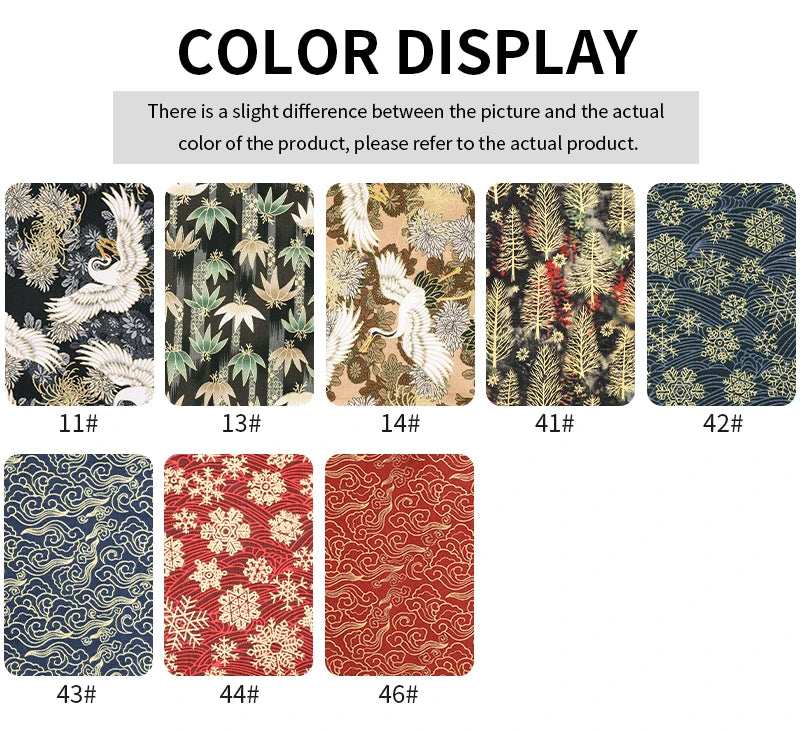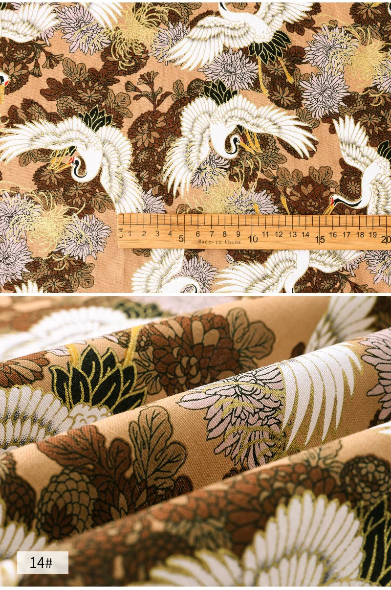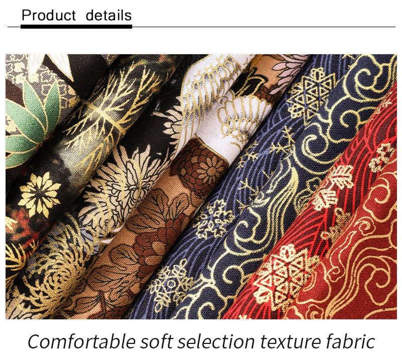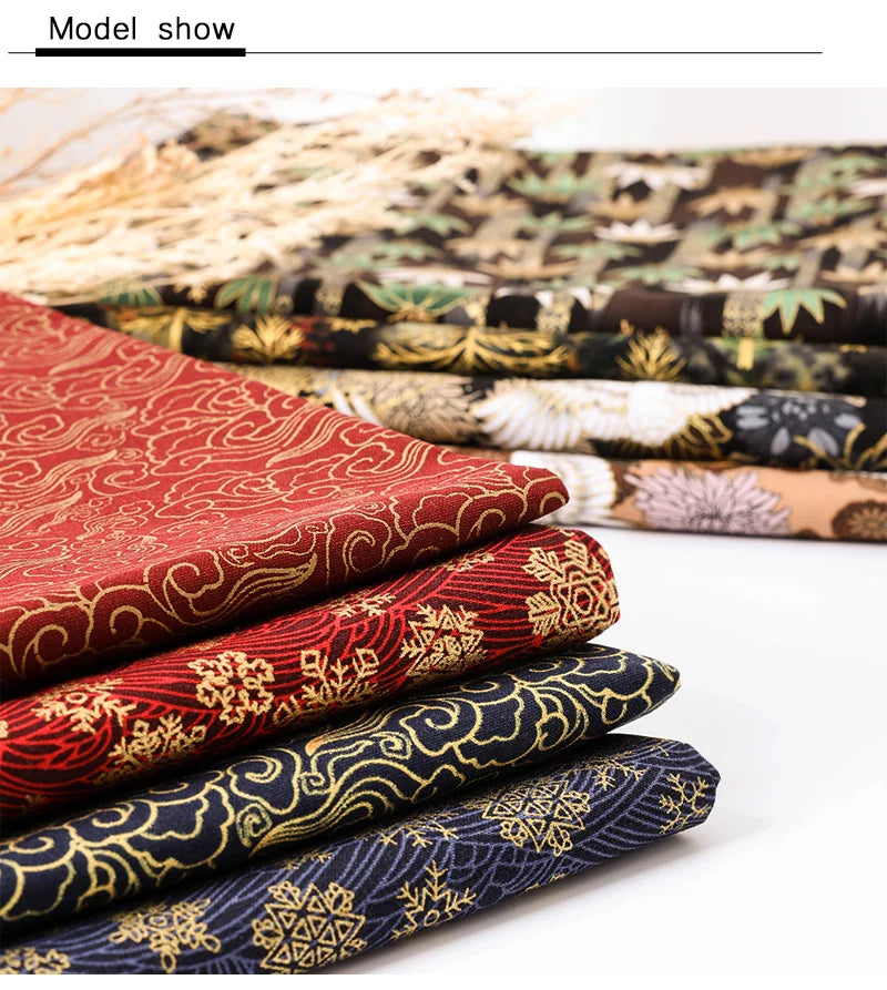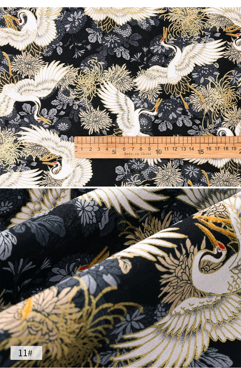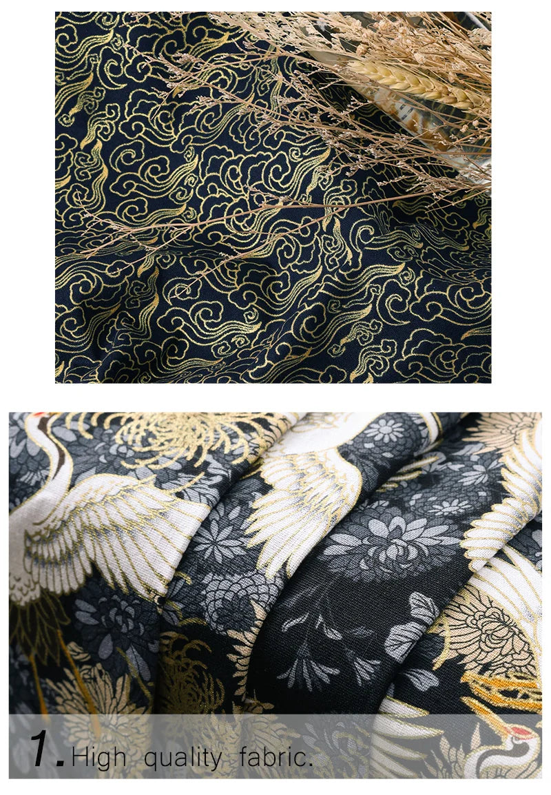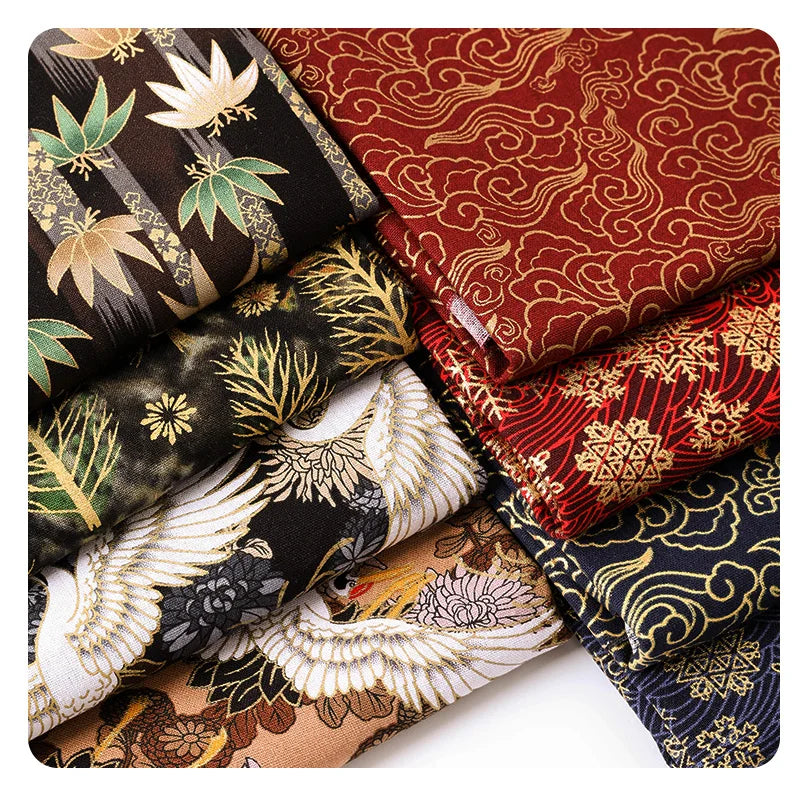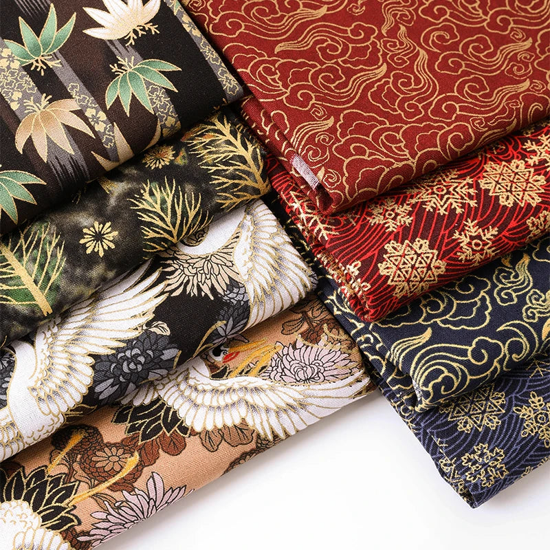 0.5/1/2 Yard 100% Cotton Fabric Traditional Japanese Kimono Style Print DIY Handmade Making Cheongsam, Hanfu, Holiday Decoration