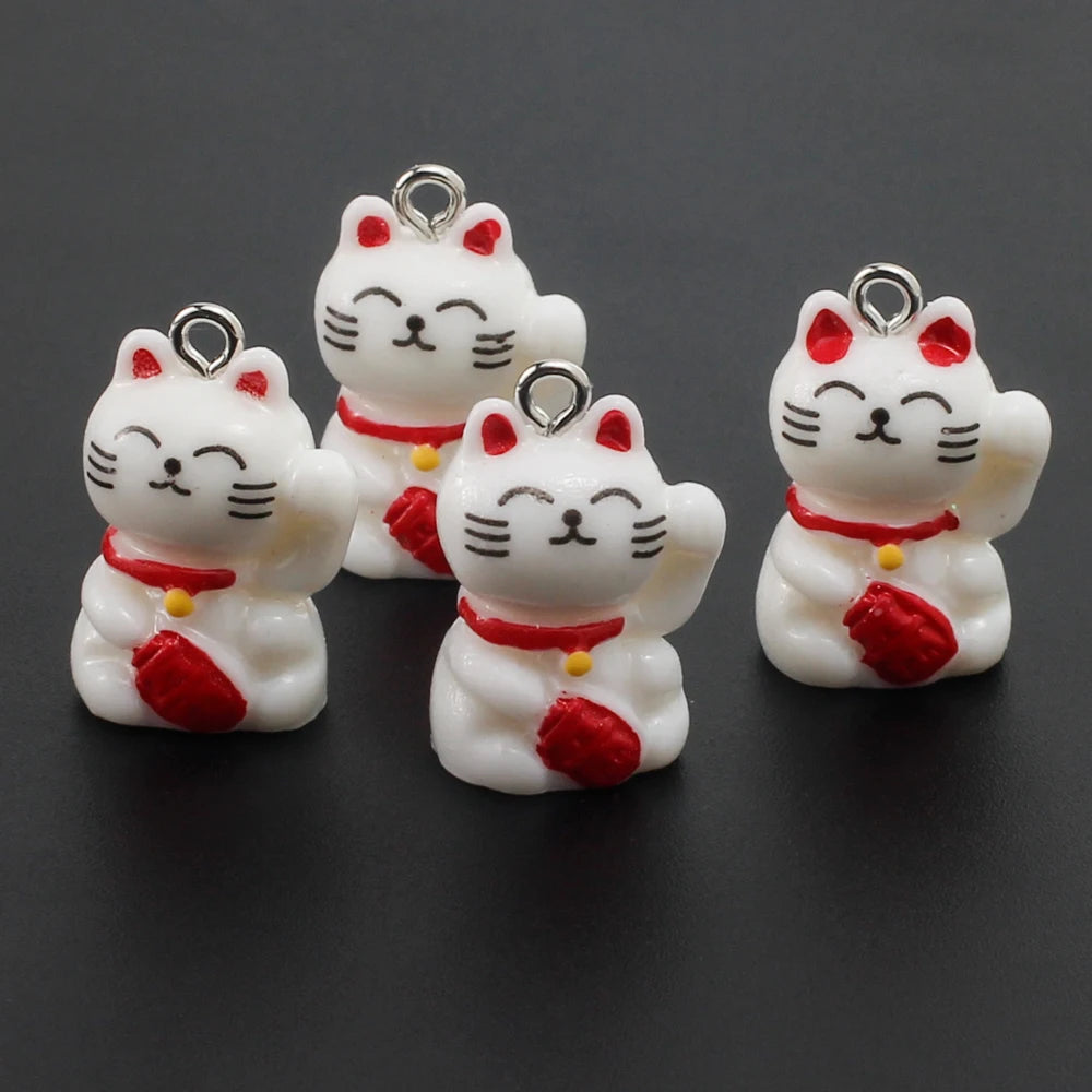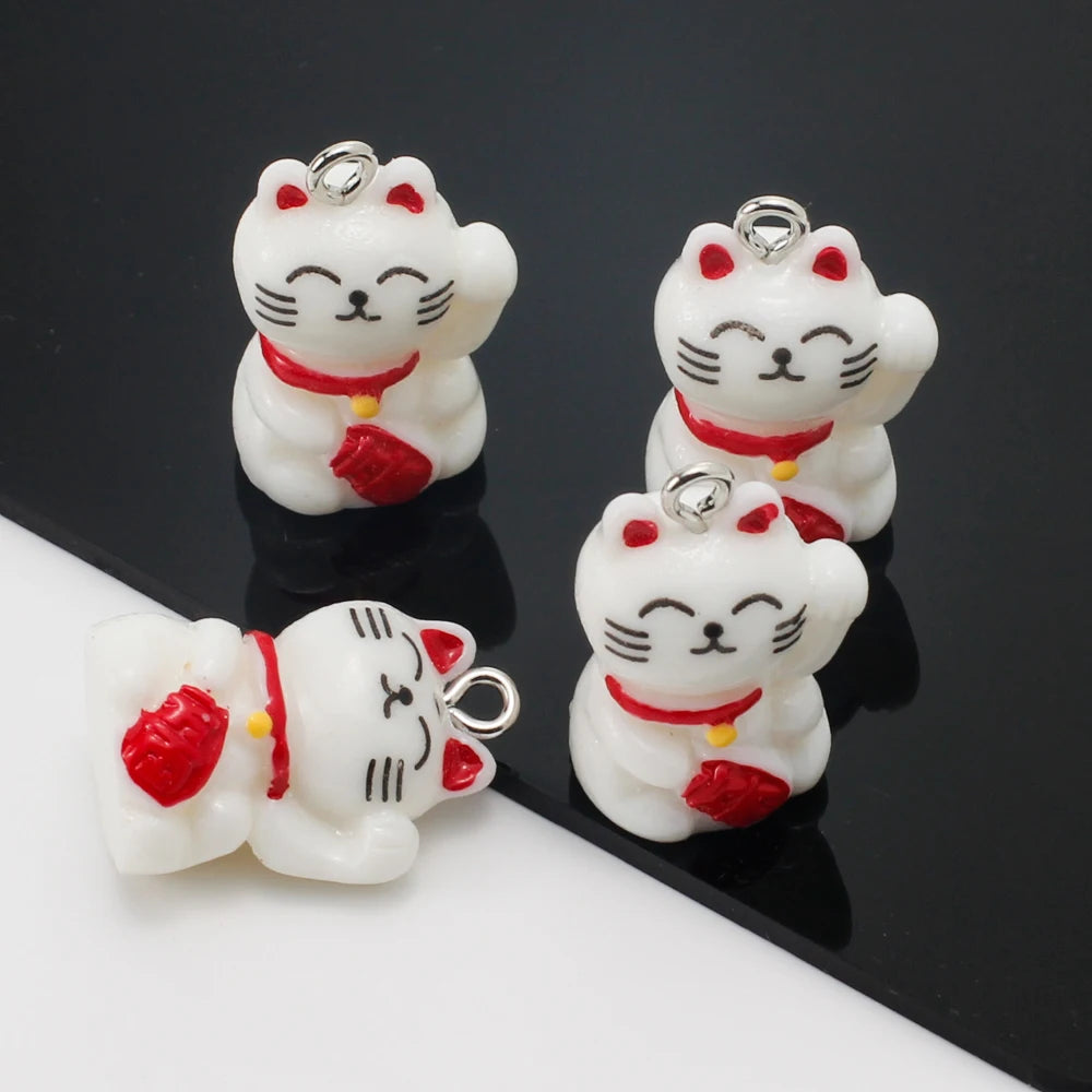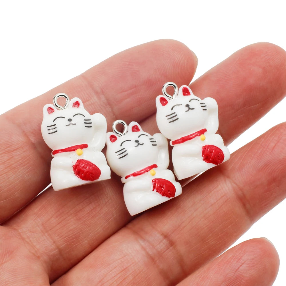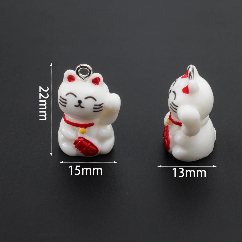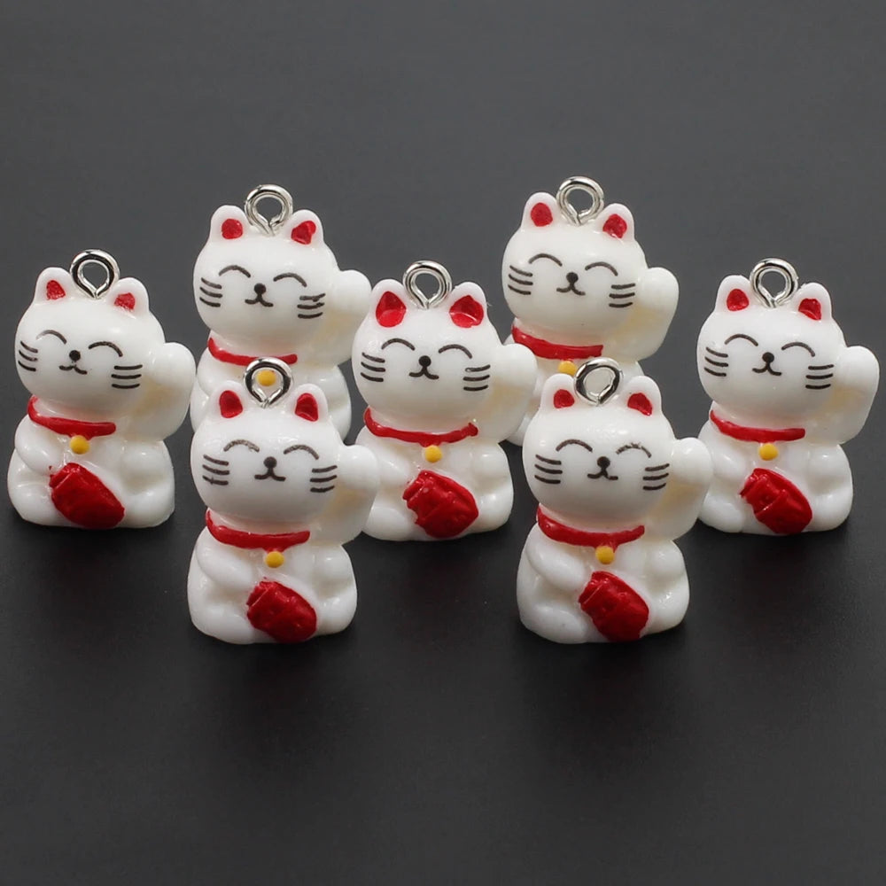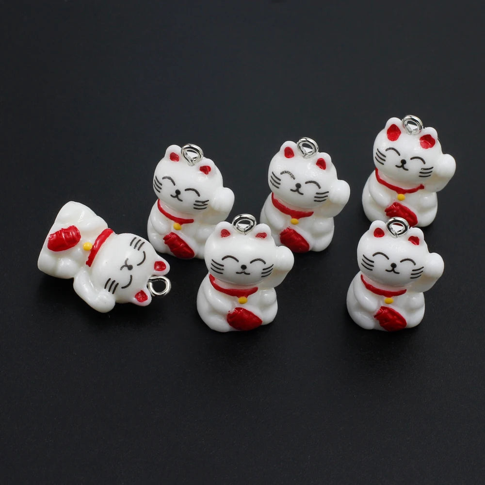 10pcs Cute Lucky Cat Resin Charms Kawaii Cartoon Animal Cats Pendants for Earrings Necklace Keychain Diy Jewelry Making Supplies