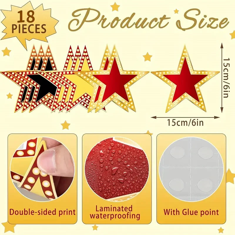 18Pc Hollywood Cinema Festival Theme Postcard Greeting Card Star Gift Invitations Card for Movie Night Birthday Party Decoration
