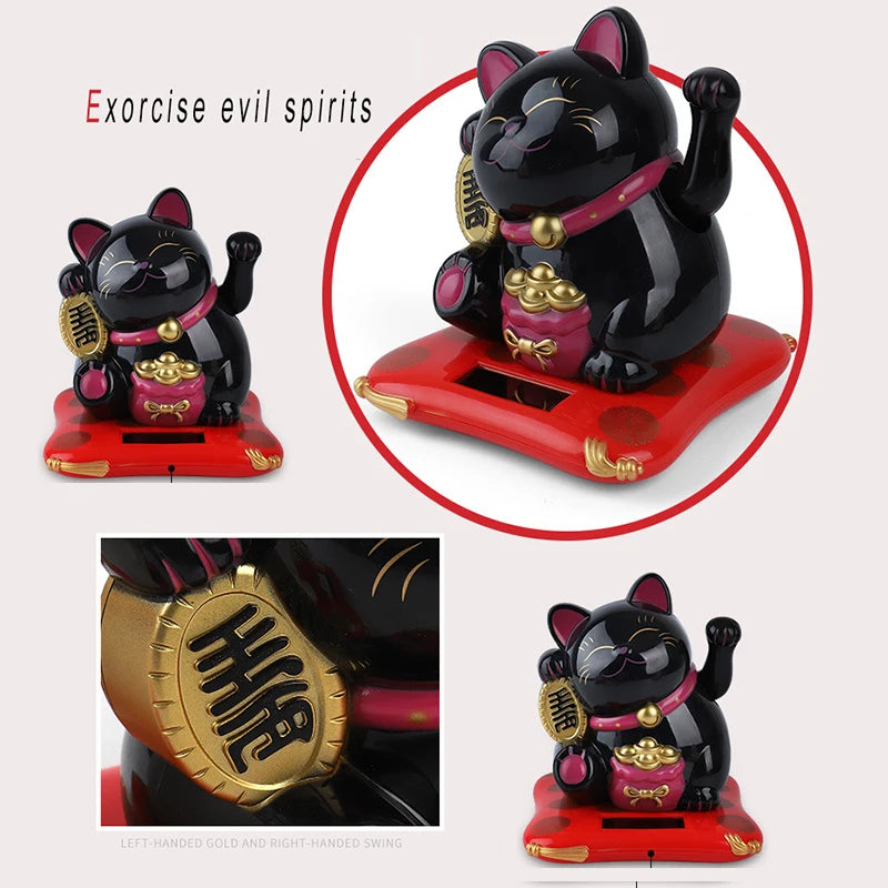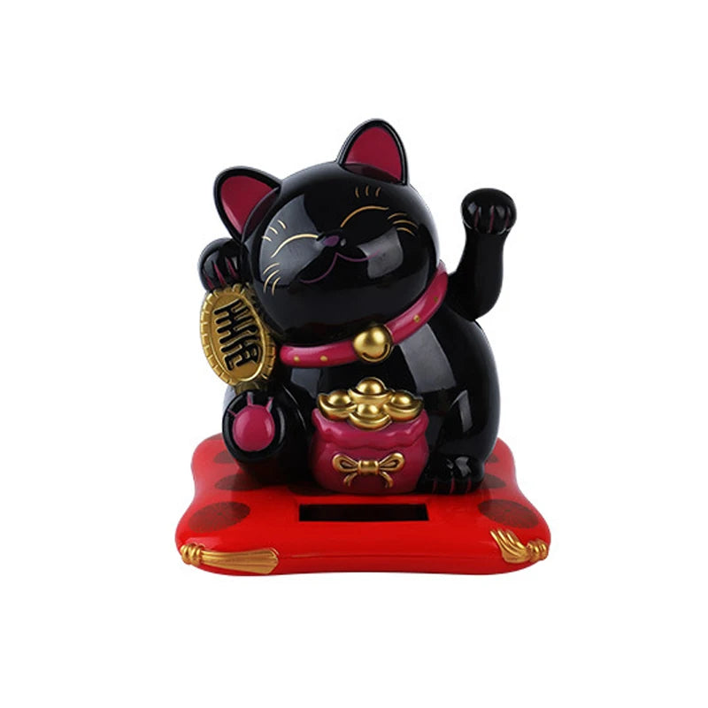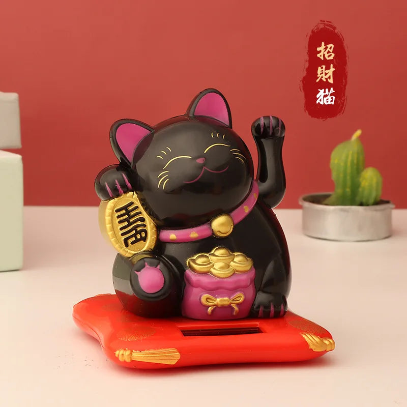 1pc Solar Powered Maneki Neko Lucky Cat Welcoming Chinese Lucky Cat Waving Hand Beckoning Fortune Cat Figurines For Home Decor