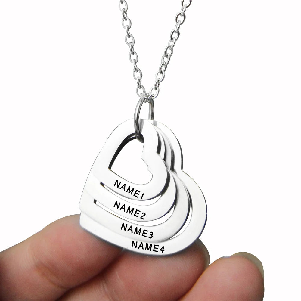 2023 Custom Stainless Steel Engraved Name Necklace For Lover Family Gift Personalized Heart Pendant Jewelry