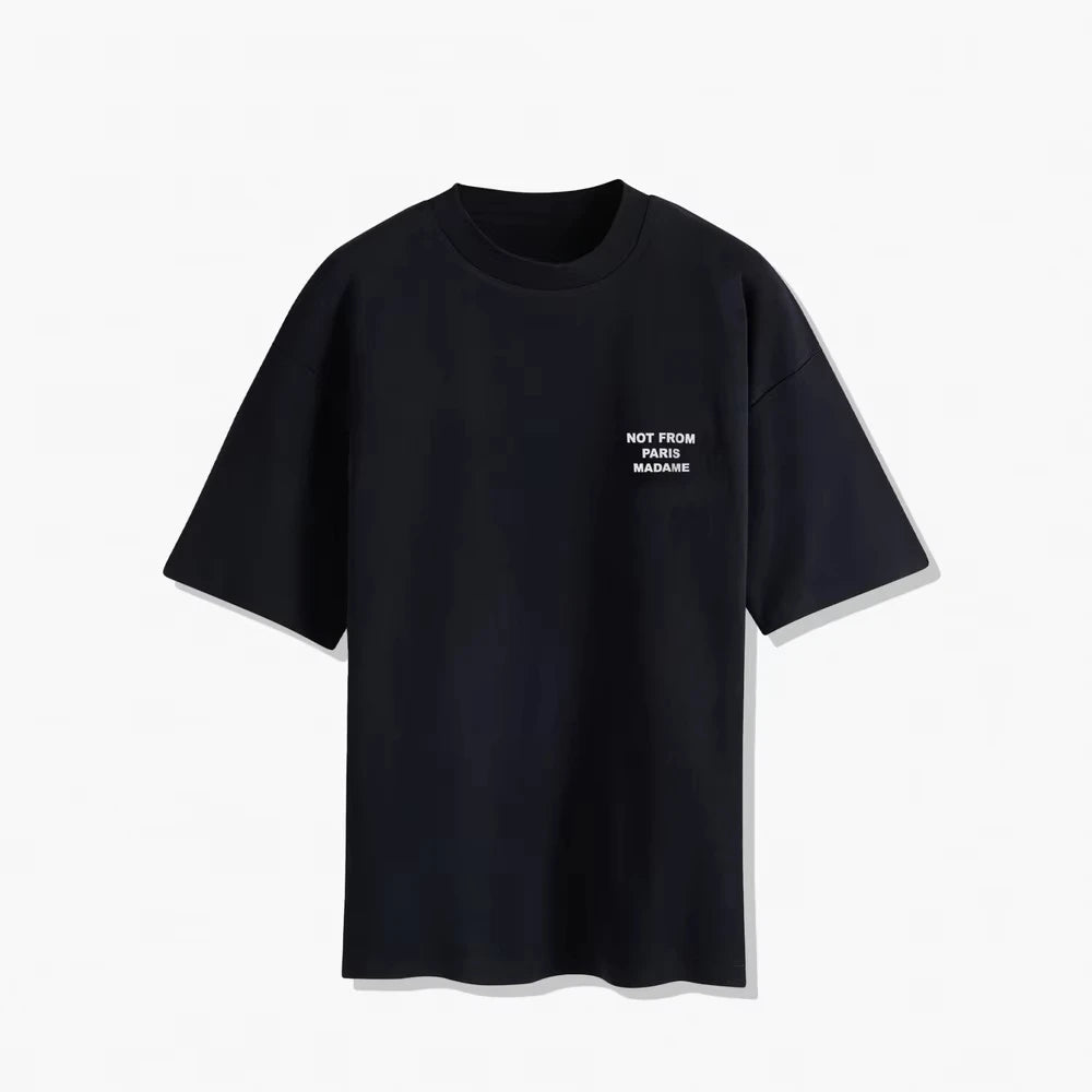 2025 Summer New T-Shirt Slogan Black Not From Paris Luxury Cotton Short Sleeve Summer Oversize T-shirt on Top for