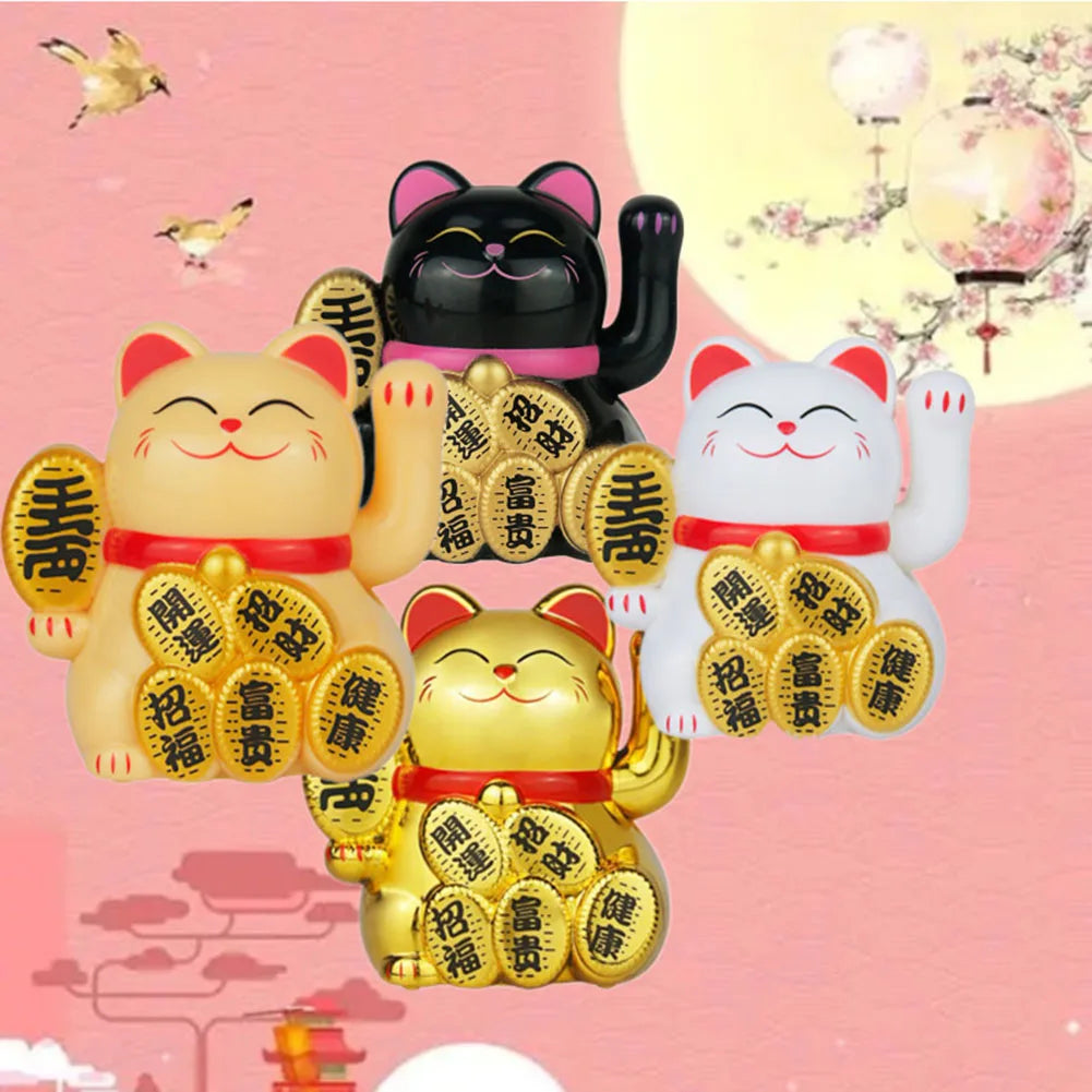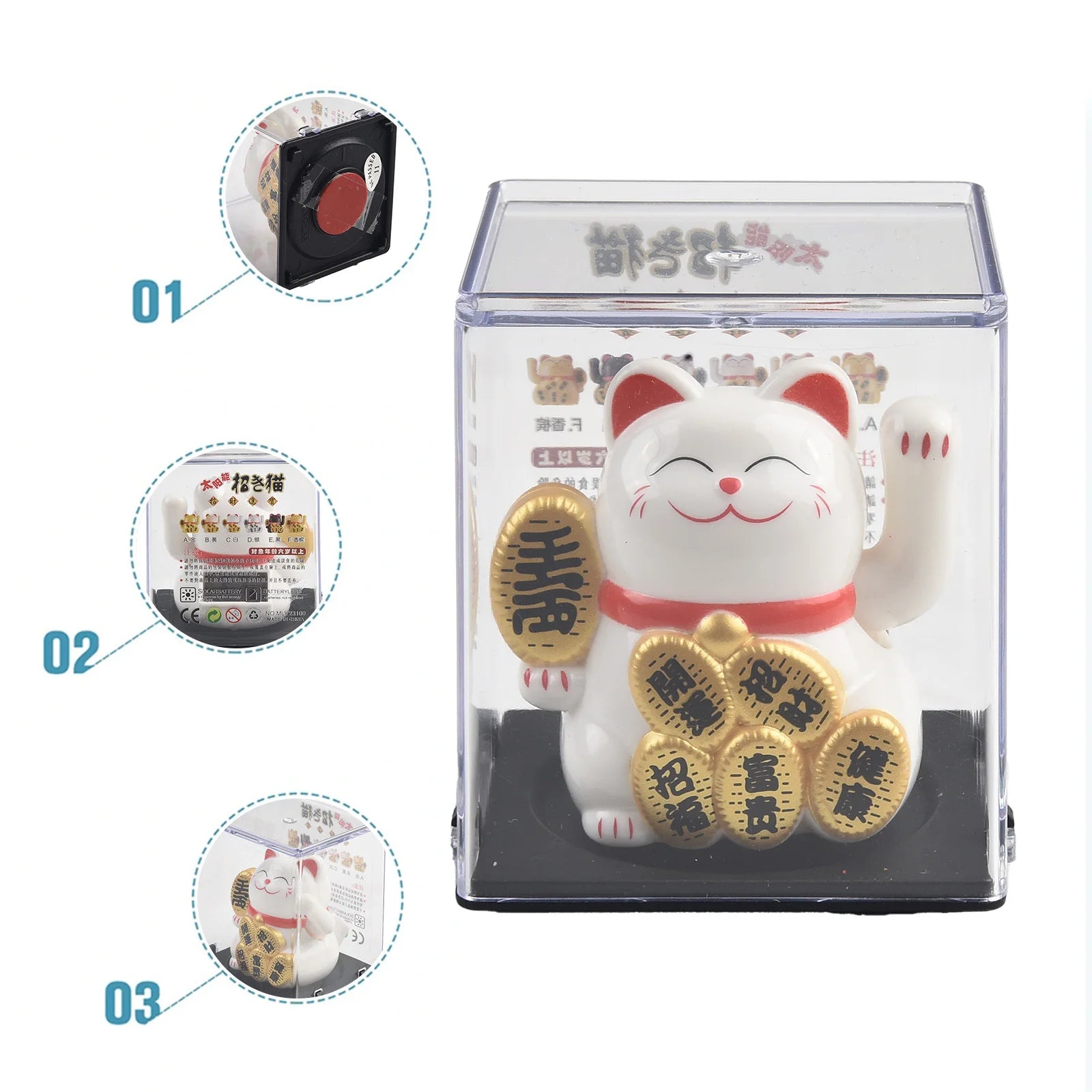 2inch Solar Powered Maneki Neko Lucky Cat For Home Office Car Decoration Birthday Gift Welcoming Waving Hand Beckoning Fortune