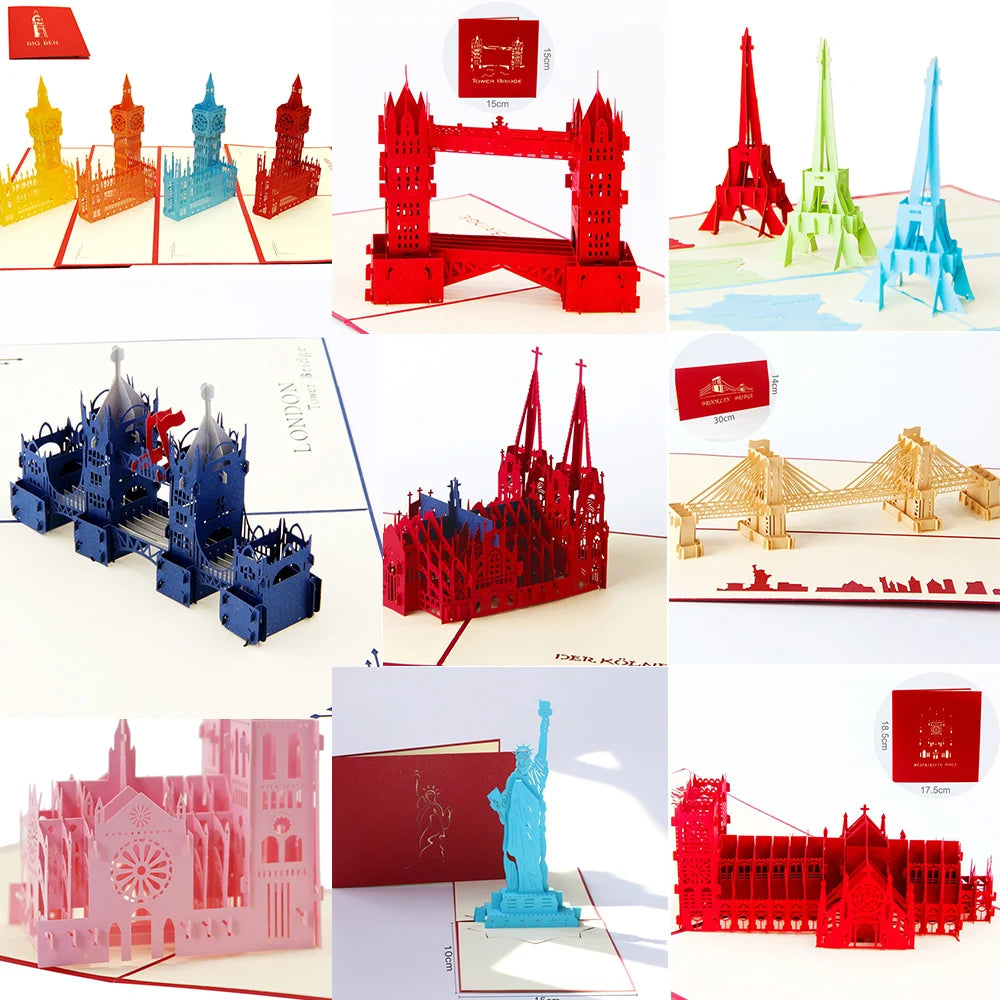 3D Pop Up Birthday Cards Laser Cut Invitations Cards World Architecture Business Card Boy Gifts Greeting Card Tourist Postcard