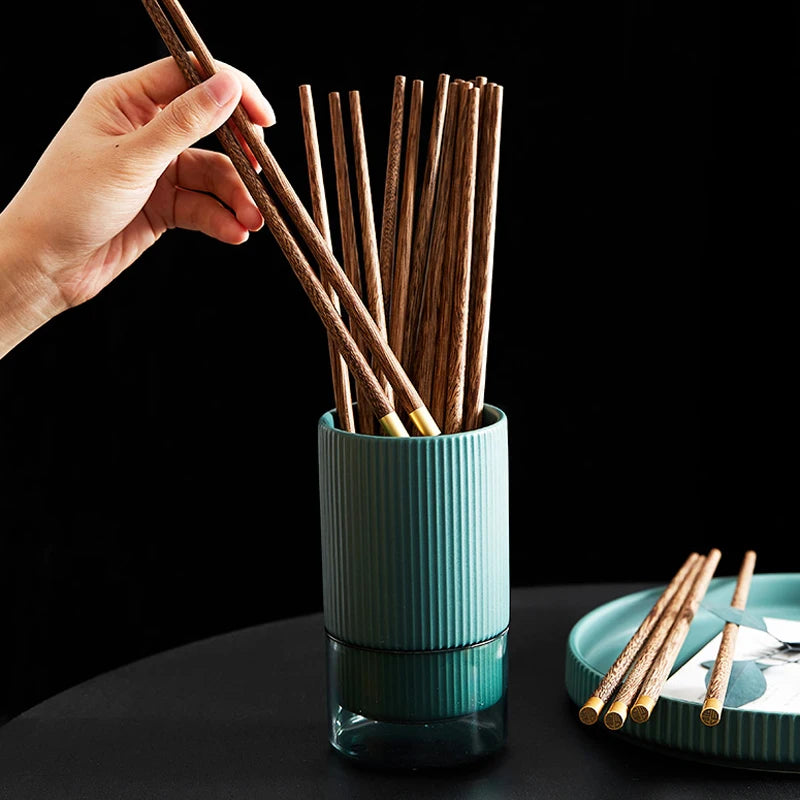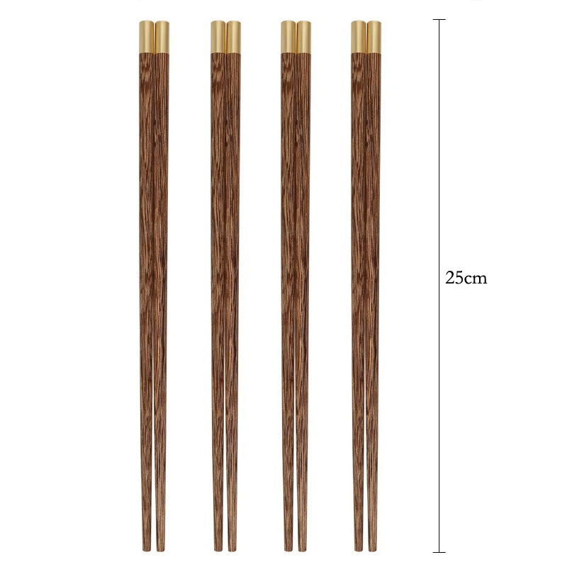 4 Pairs Wooden Chopsticks Long Handle Sushi Sticks Japanese Chopstick Set Reusable Korean Food Chop Sticks Chinese Chopsticks With Round Copper Head and Laser FuKitchen Wood Tableware