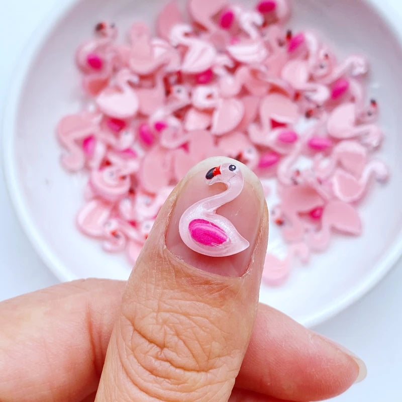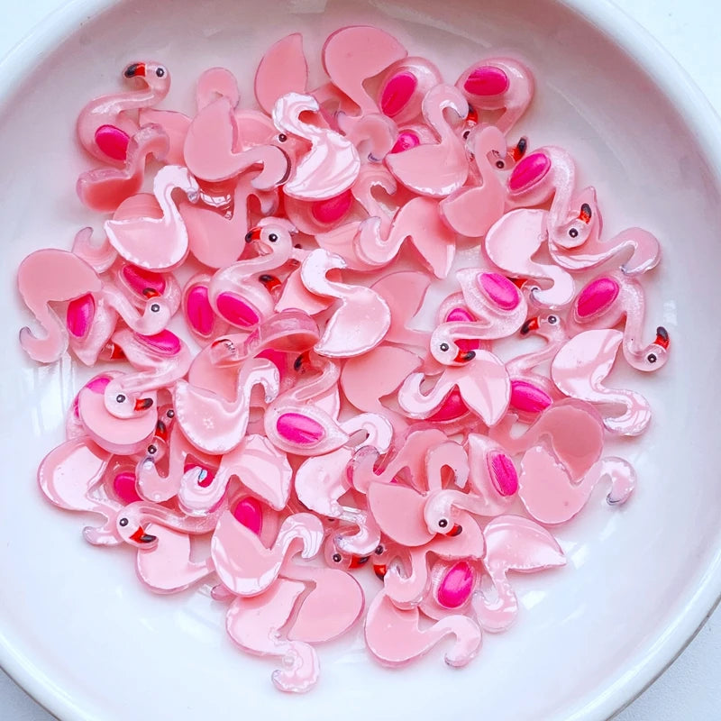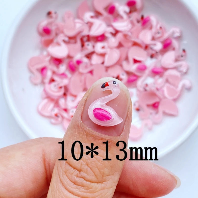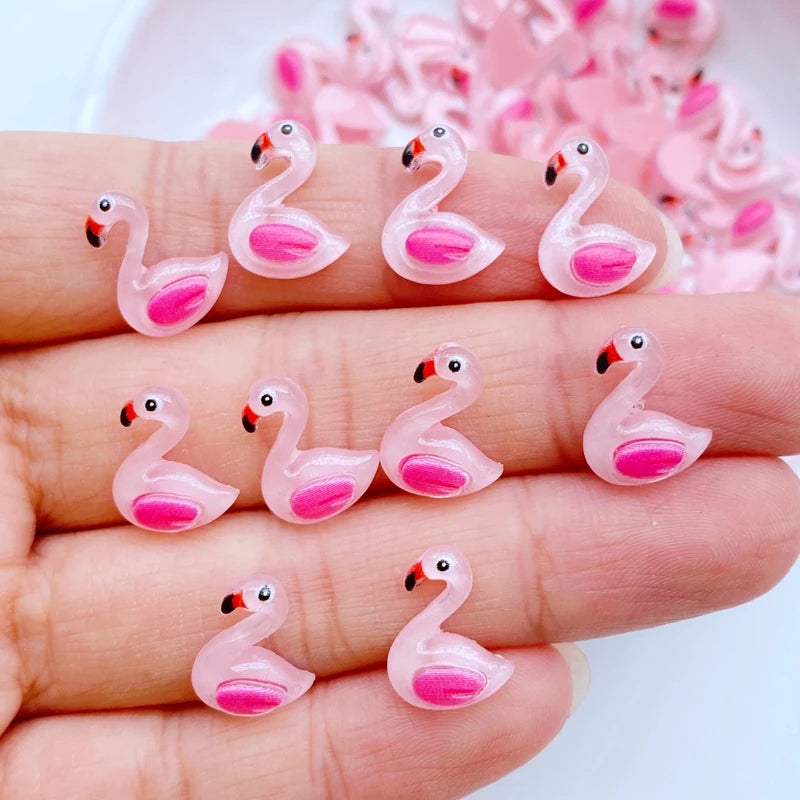 50Pcs New Cute Mini 10*13mm Cartoon Animal Flamingo Resin Figurine Crafts Flatback Ornament Jewelry Making Hairwear Accessories