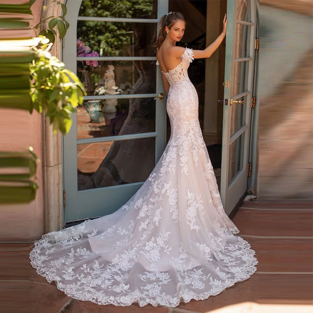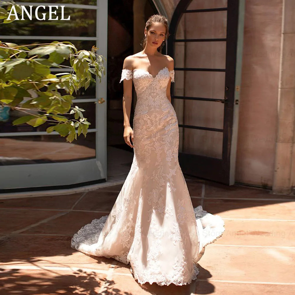 ANGEL Off Shoulder Mermaid Wedding Dress 2025 Customized Backless Vestido De Noiva Casamento Romantic Lace Tulle Bride Party