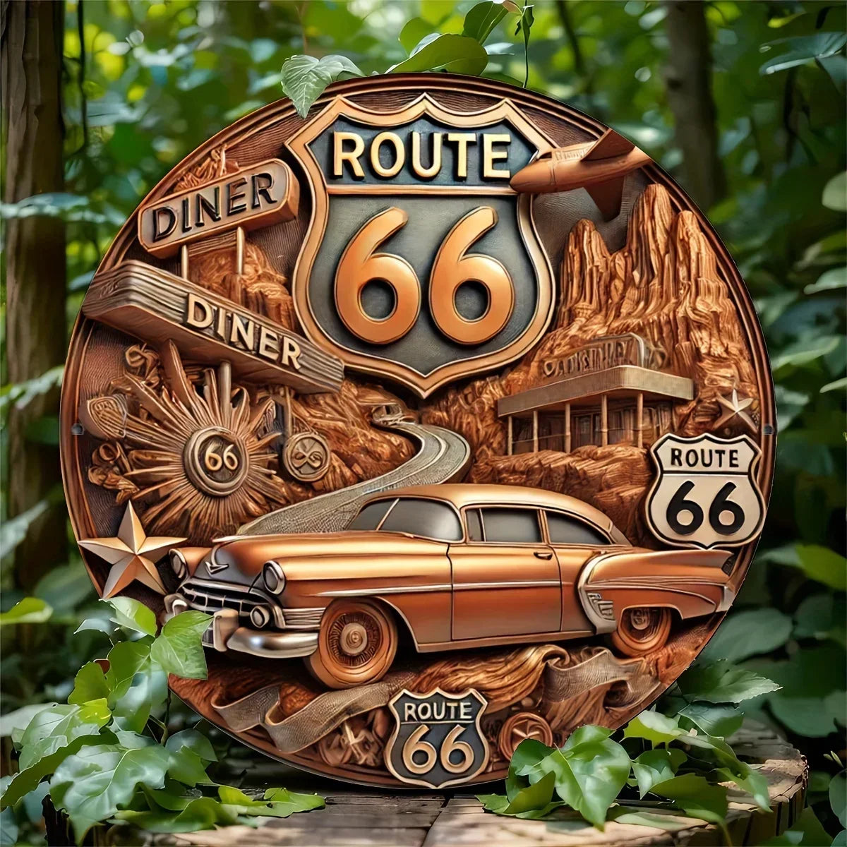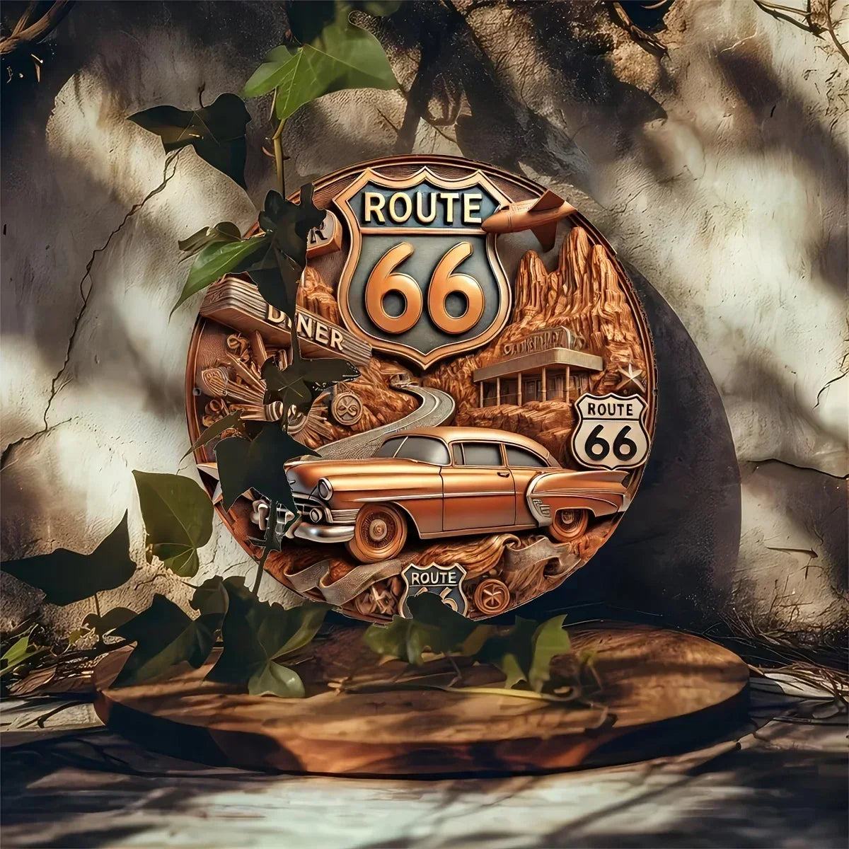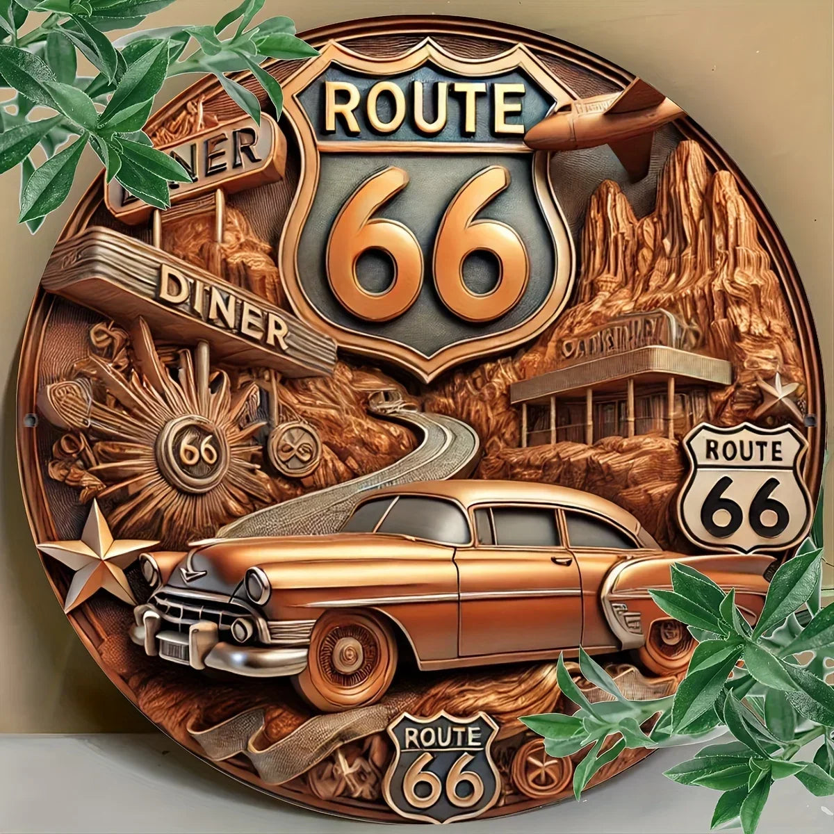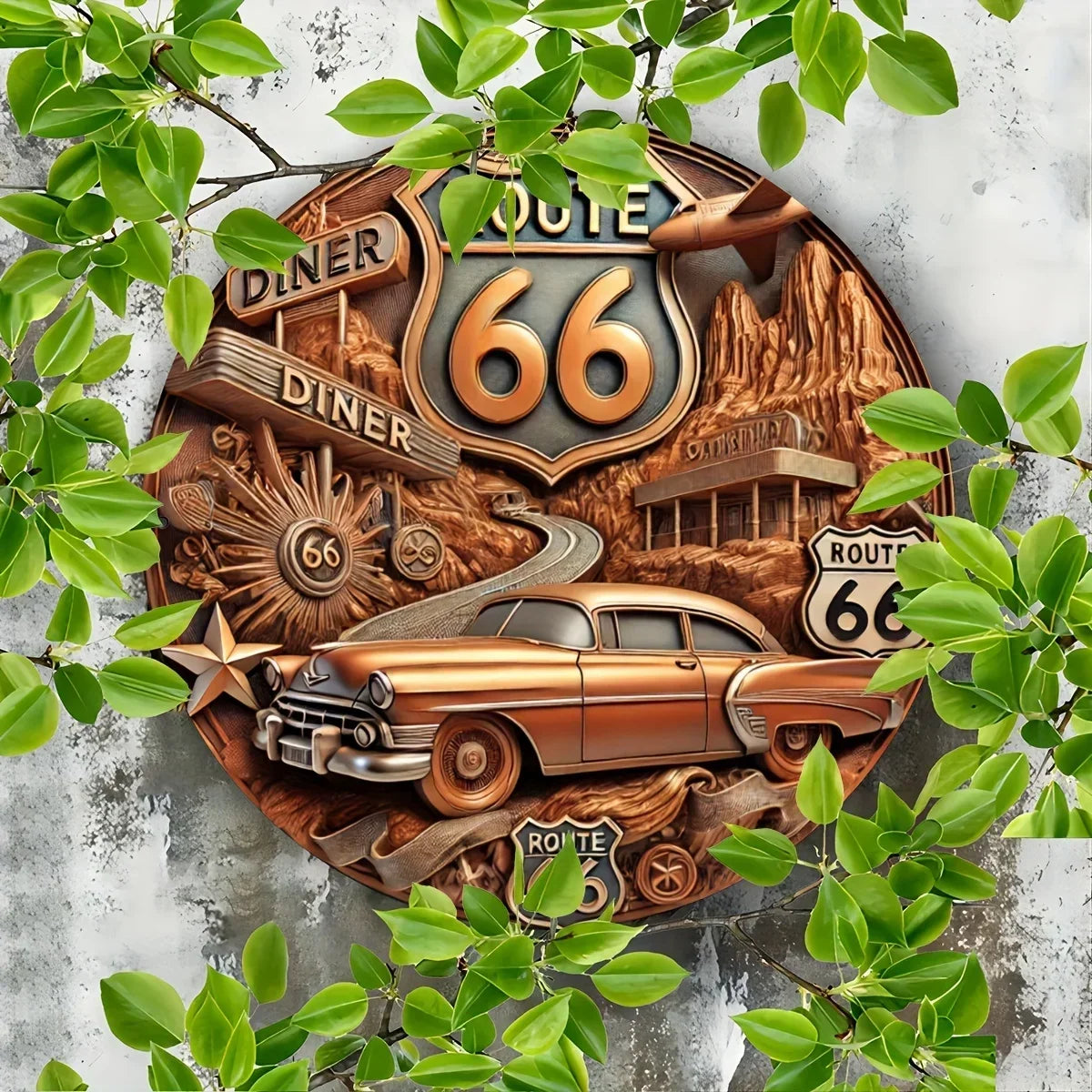 Antique Route 66 Decorative Metal Sign 78x78 Inches Outdoor Wall Art Durable Weather Resistant Ideal for Home and Garden Decor