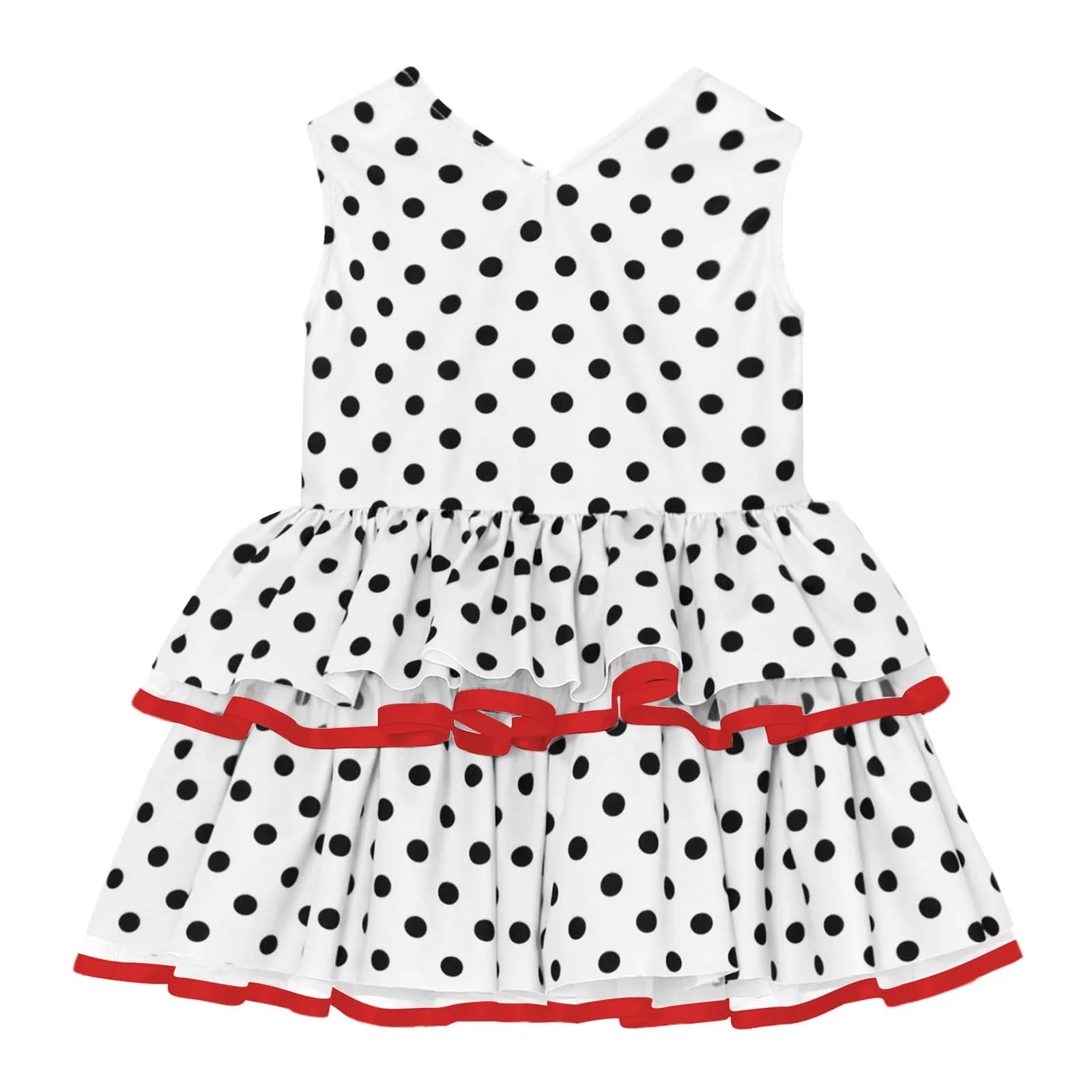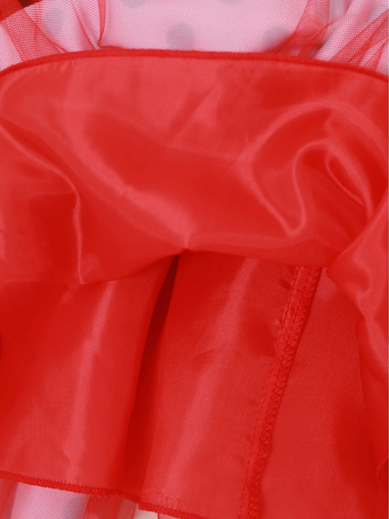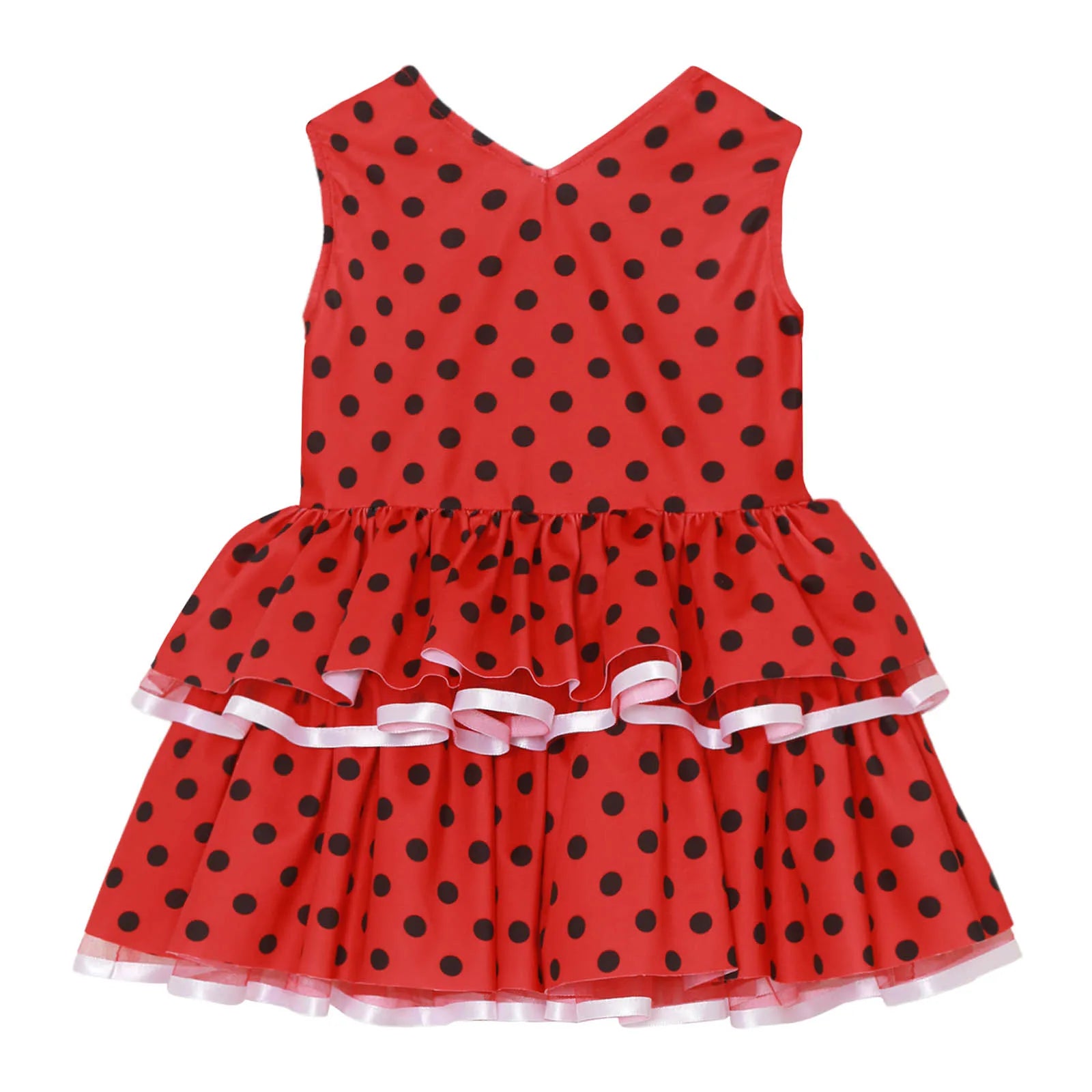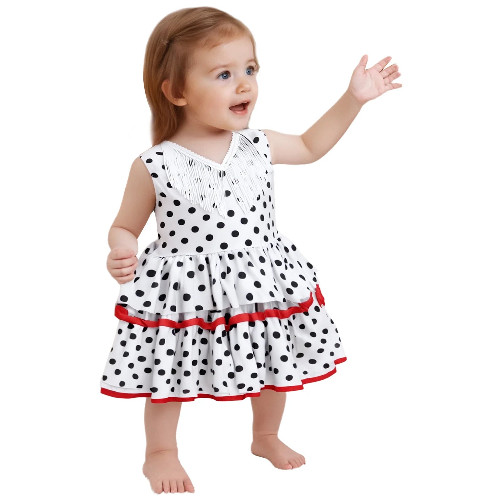 Baby Girls Cute Flamenco Dance Costume V-neck Sleeveless Tassel Polka Dot Mesh Layered Cake Dress for Dance Party Performance