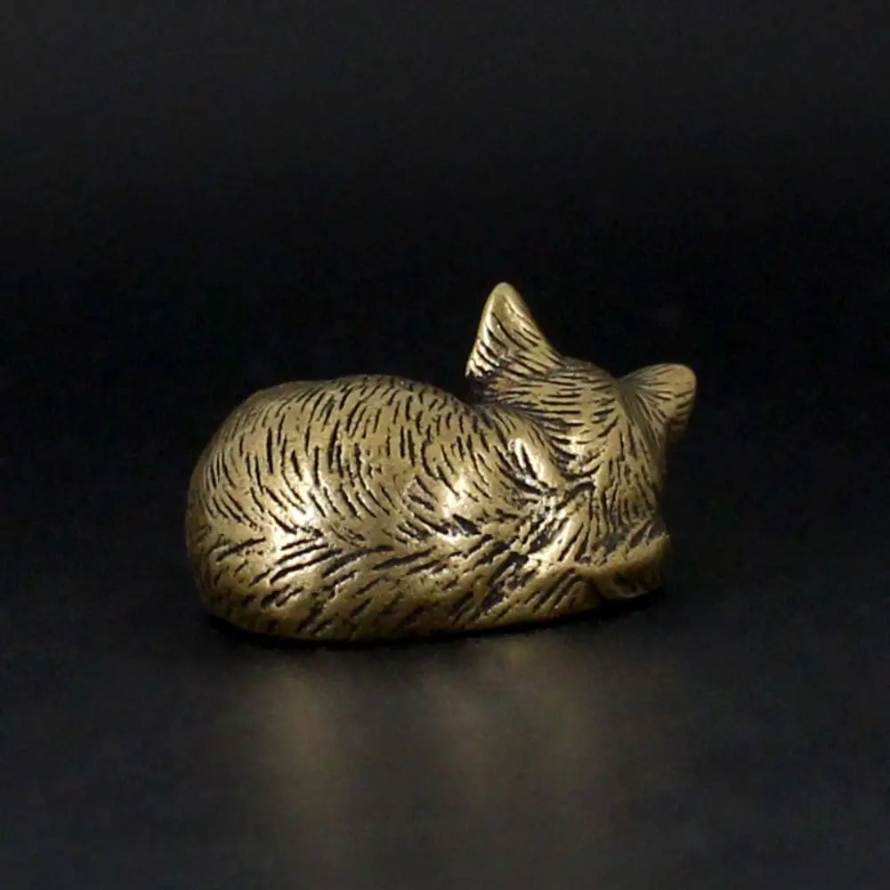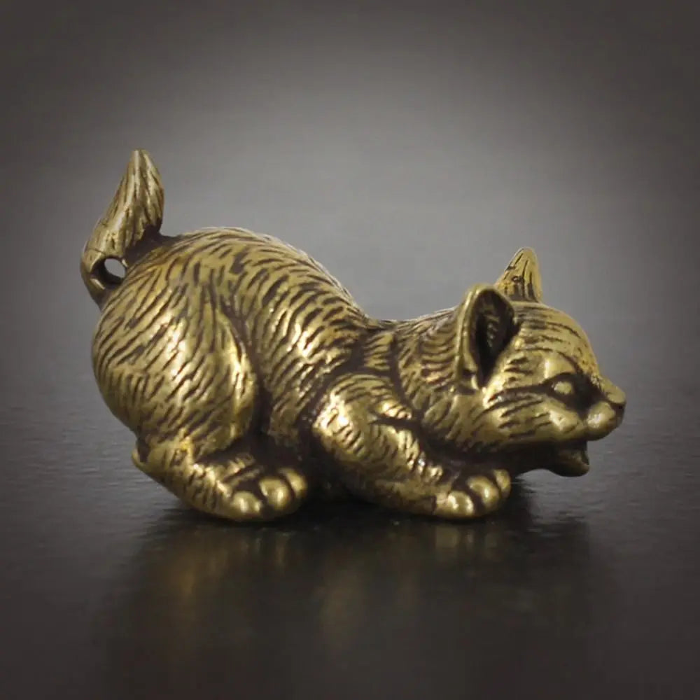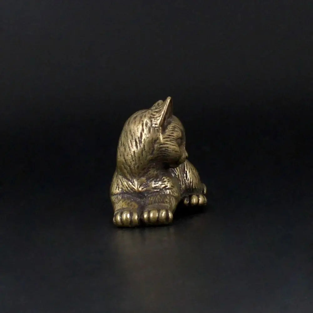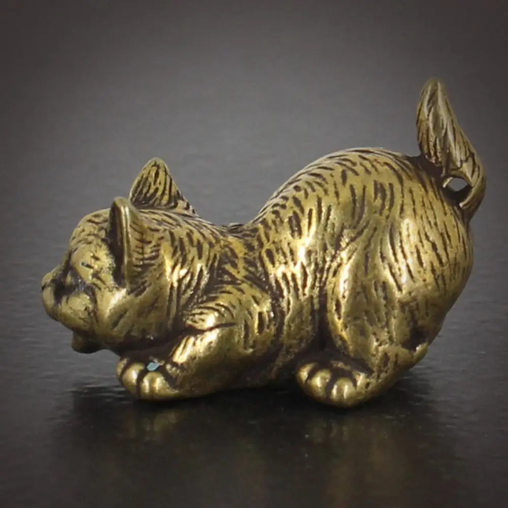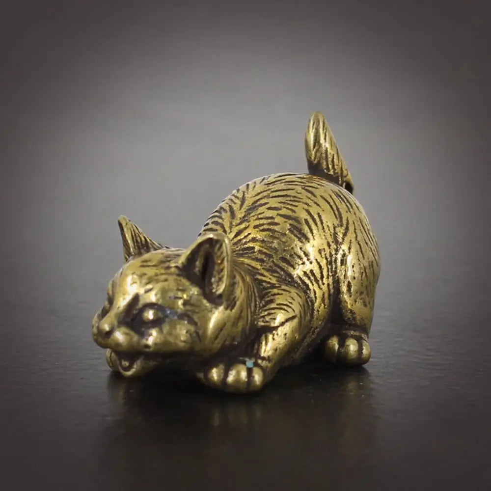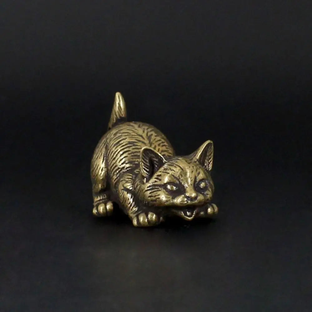 Crafts Brass Small Cat Metal Statue Cute Creative Tea Pet Simulated Exquisite Model Sculpture Toy