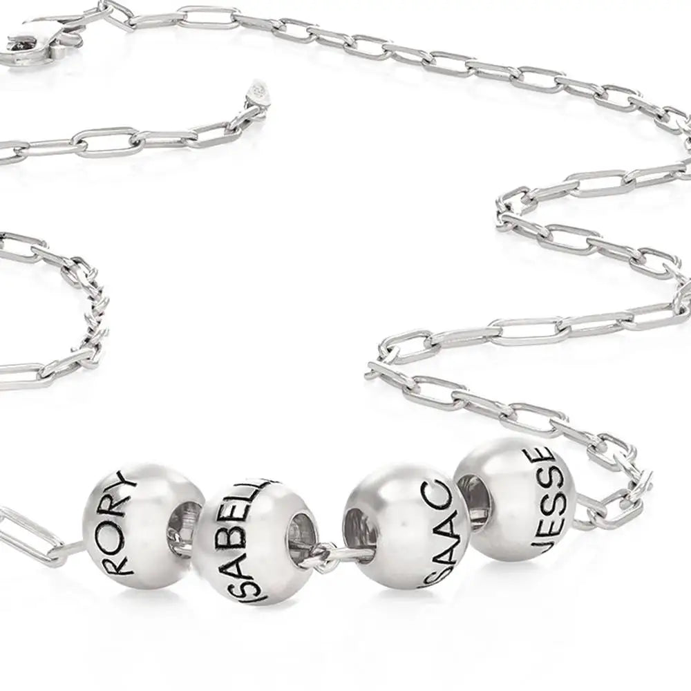 Custom Name Balance Bead Necklace in Stainless Steel Multiple Name Personalized Pendants Lucky Necklace Gift for Mom Paperclip