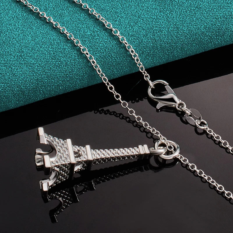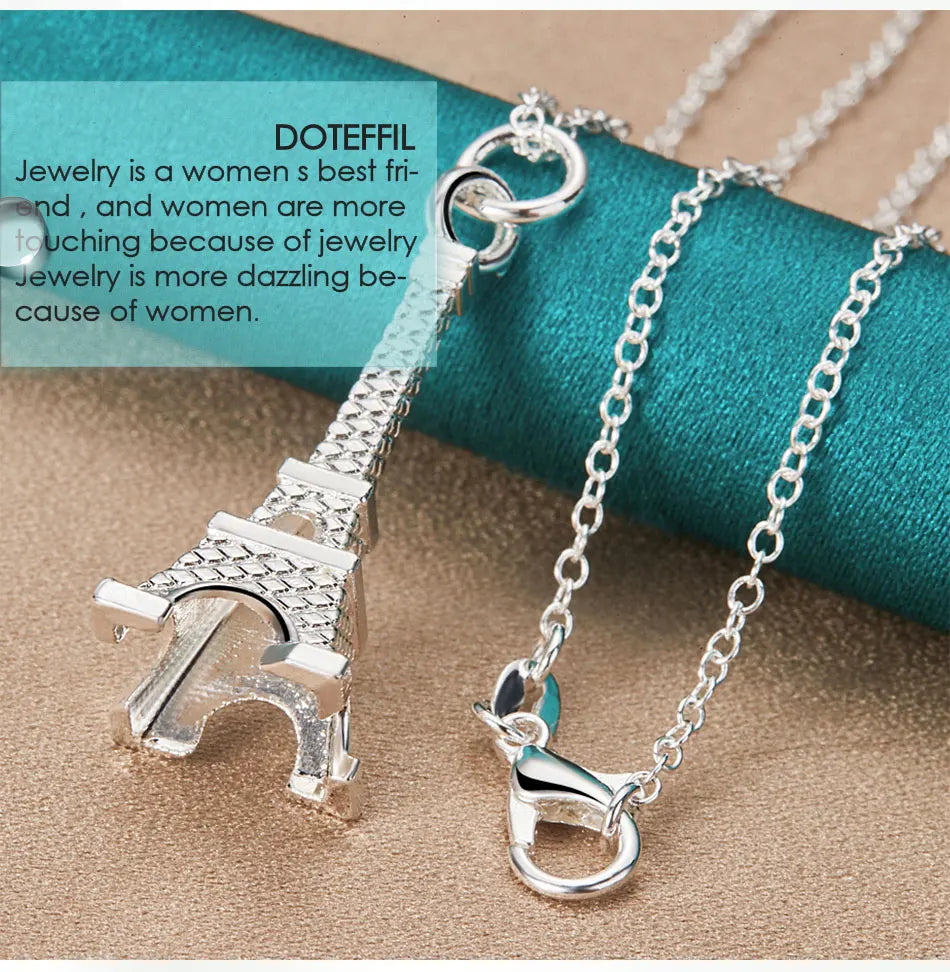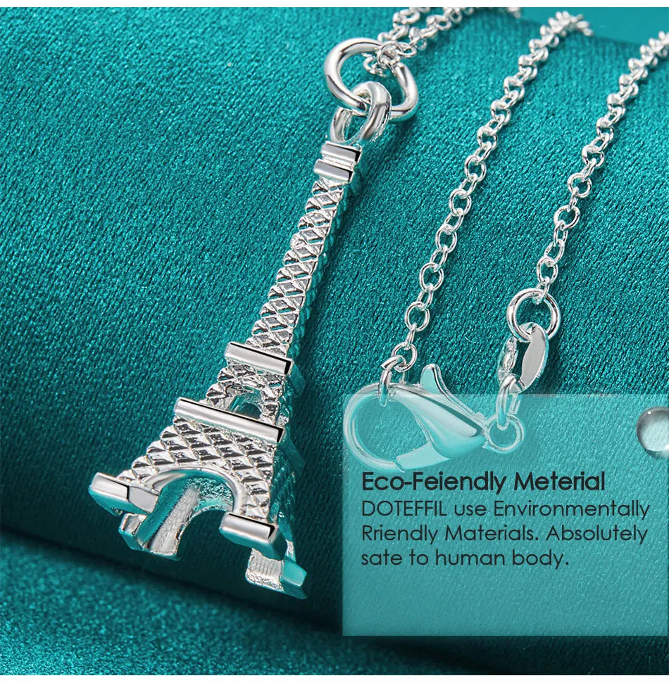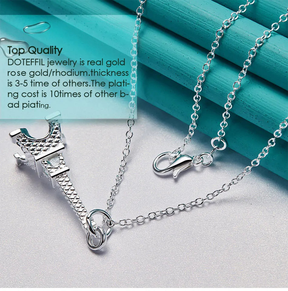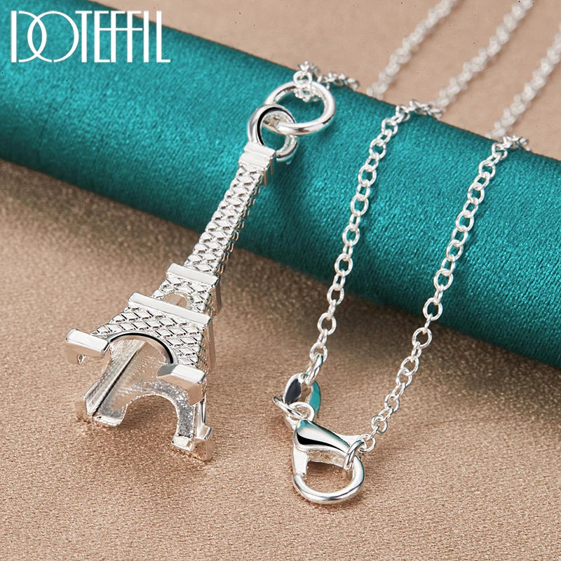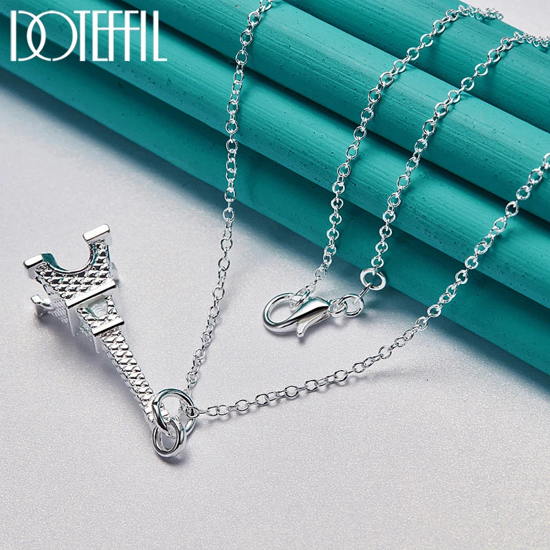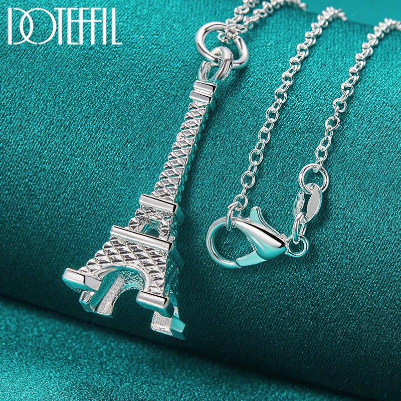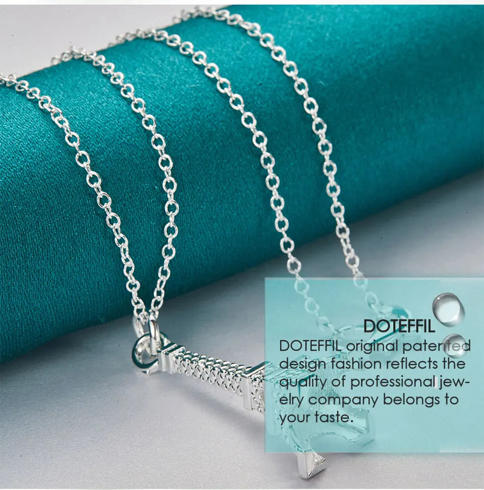 DOTEFFIL 925 Sterling Silver 16-30 Inch Chain Eiffel Tower Paris Pendant Necklace For Woman Wedding Engagement Fashion Jewelry