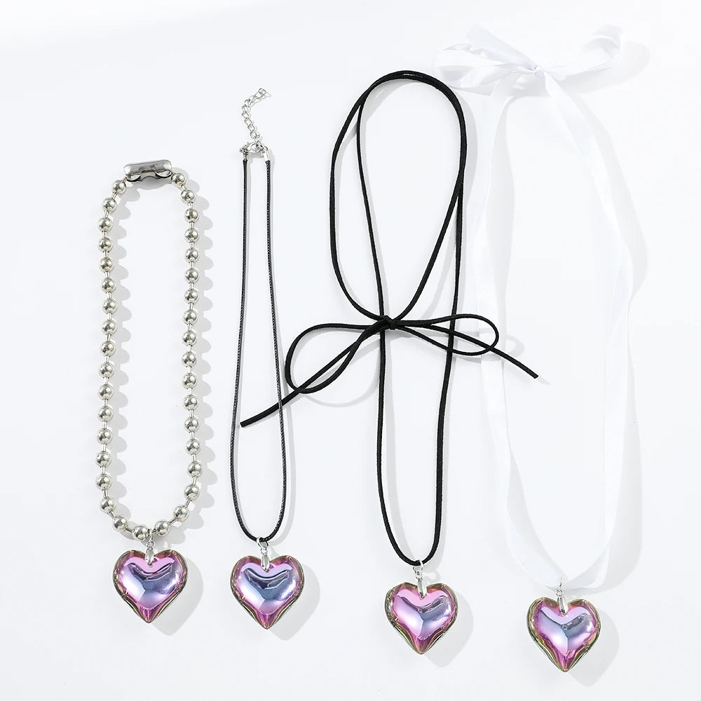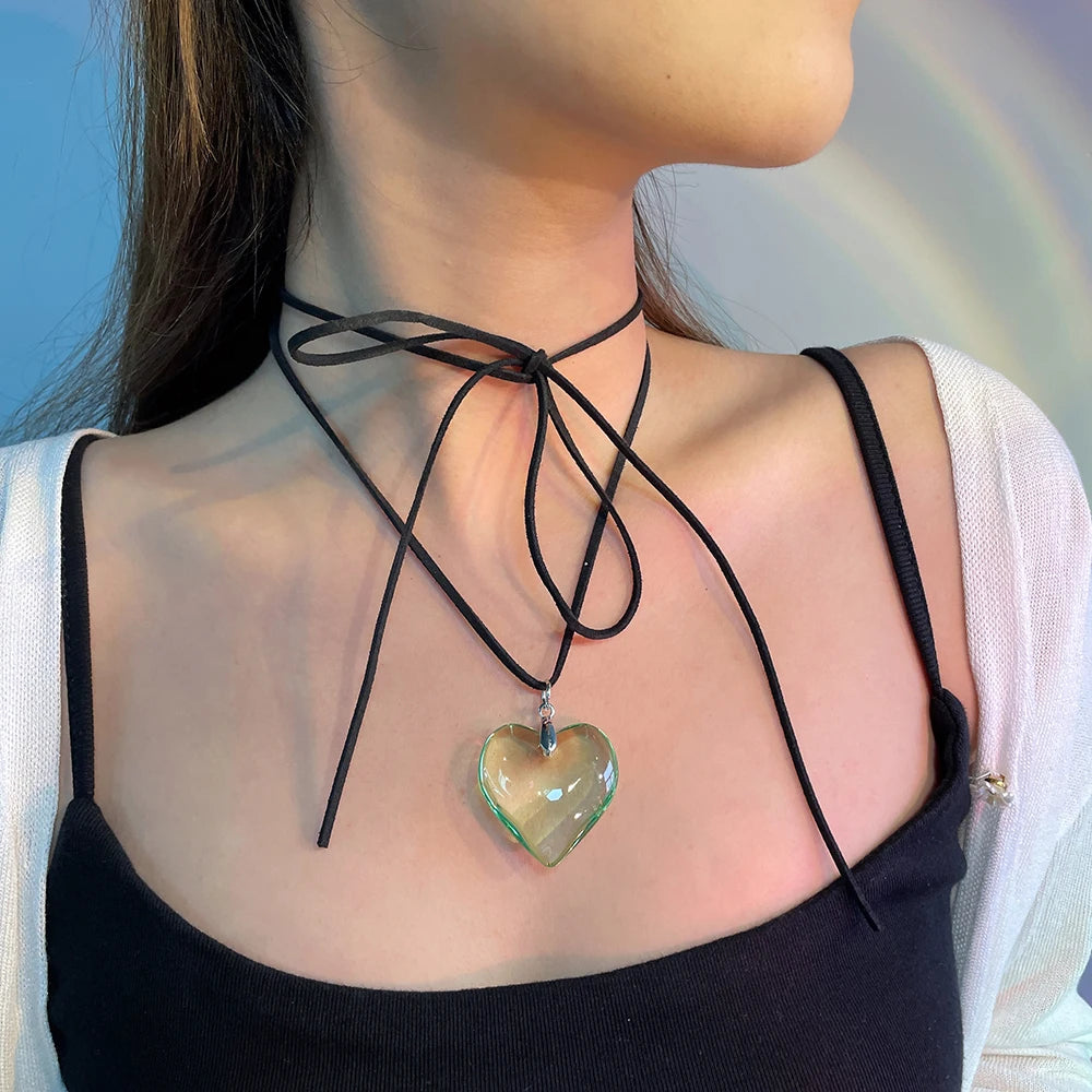 Elegant Love Heart Pendant Necklace for Women Y2K Jewelry Collares Wed Bridal Knotted Bowknot Adjustable Boho Neck Chains