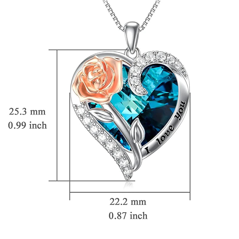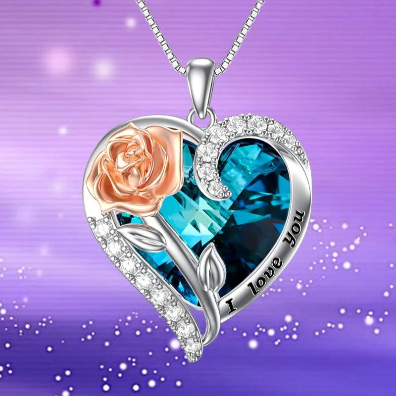 Fashion "I Love You" Rose Flower Pendant Necklace Ladies Heart Crystal Jewelry Anniversary Birthday Gift Mom Wife Girlfriend
