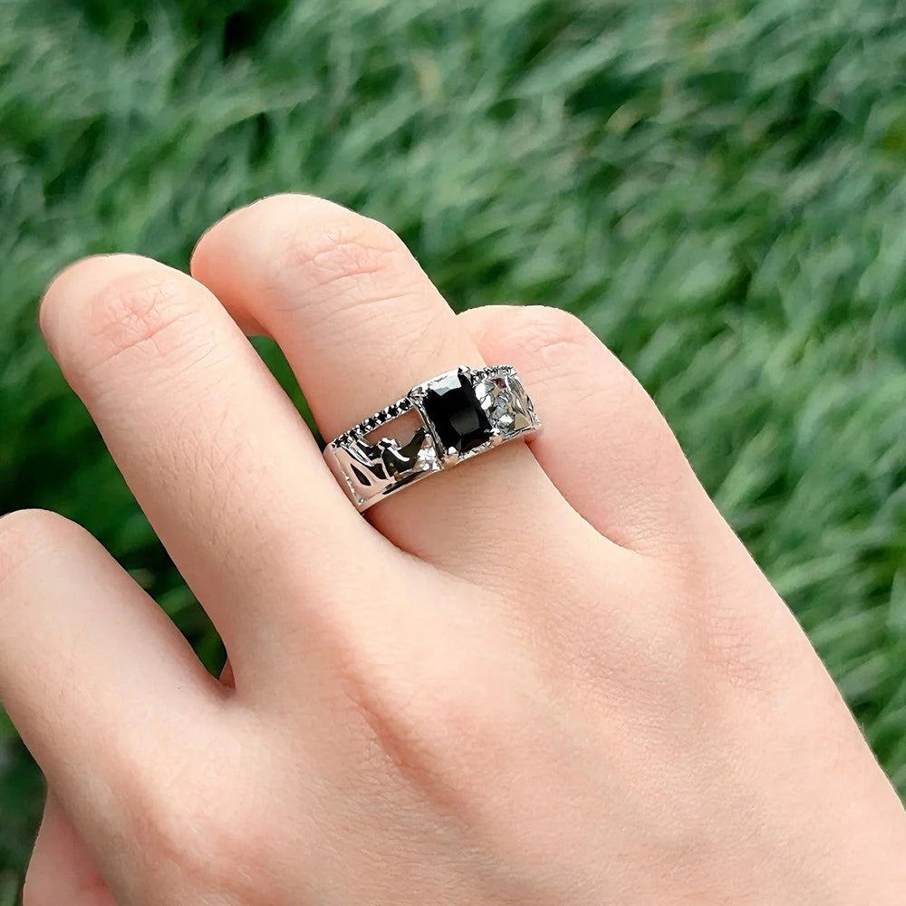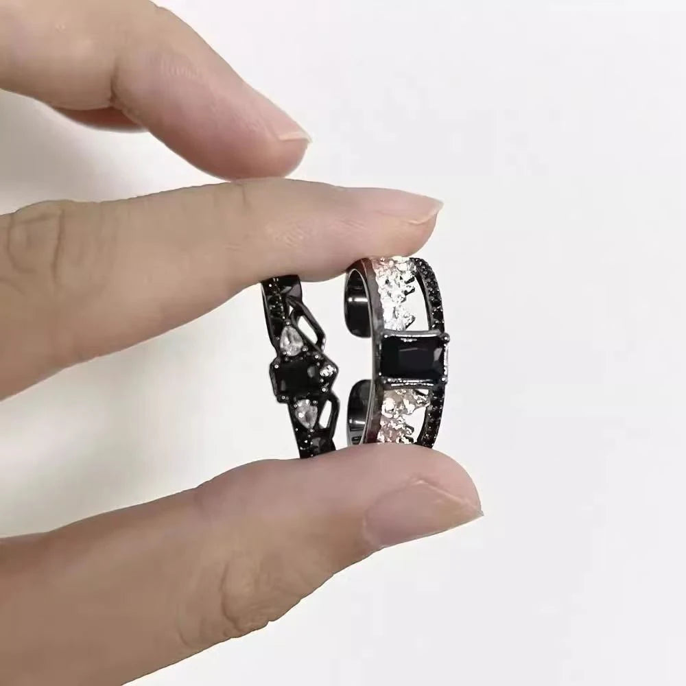 Game Love And Deepspace Sylus Rings Cosplay Black Gemstone Couple Ring Alloy Adjustable Jewelry Accessories Christmas Gift