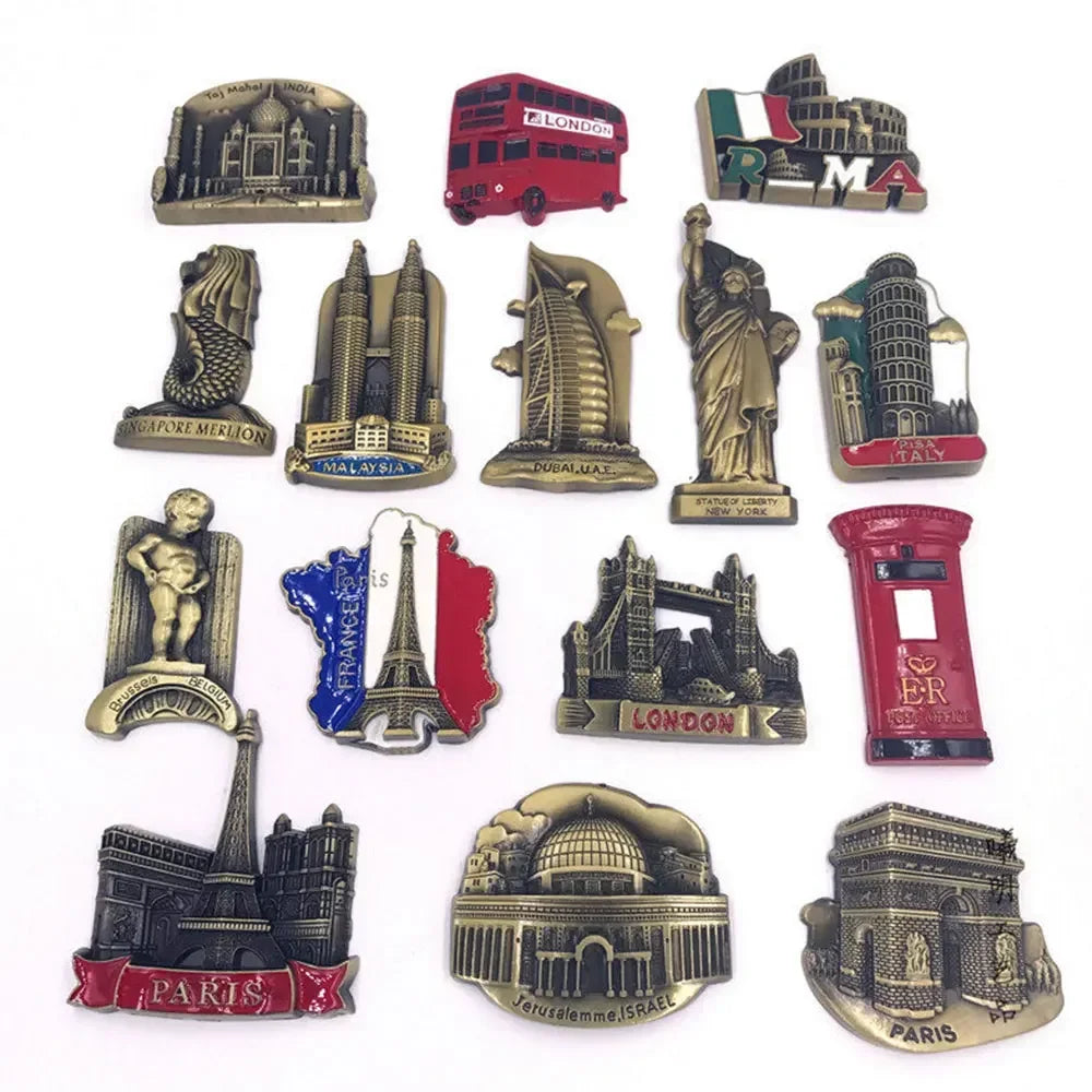 Home Decor Fridge Magnet Refrigerator Metal USA Alaska York Paris Italy London Post Office UK Dubai Belgium Israel Stereo