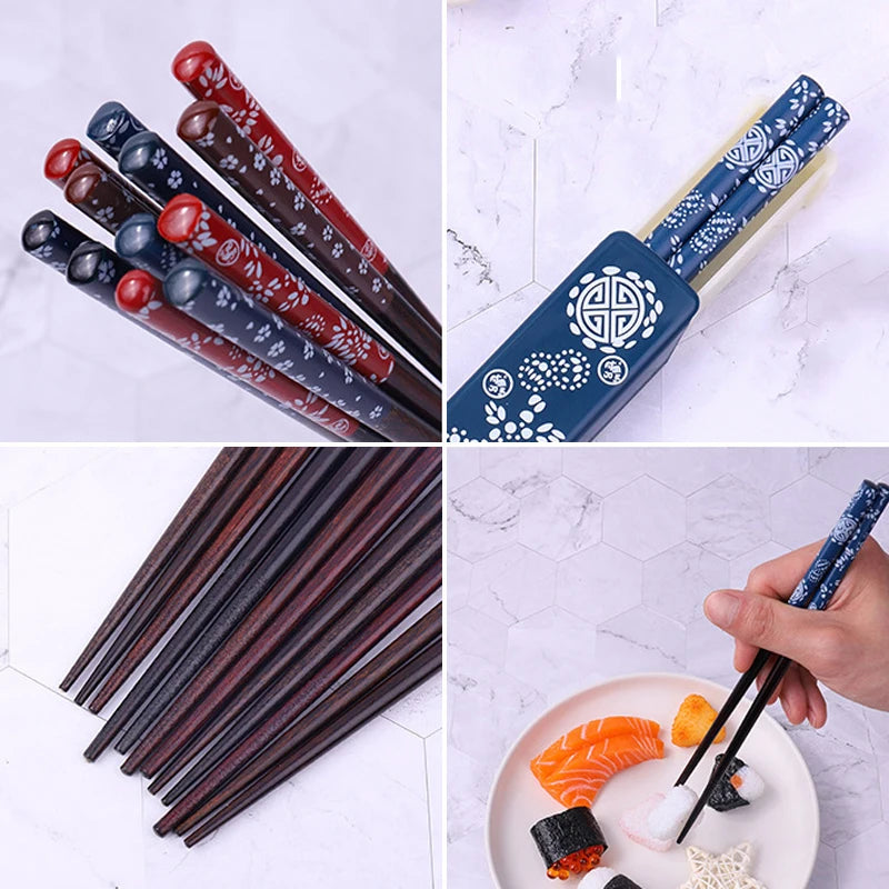 Japanese Chopsticks Natural Ironwood Handmade Value Gift Sushi Chinese Food Reusable Portable Travel Tableware with Box Set