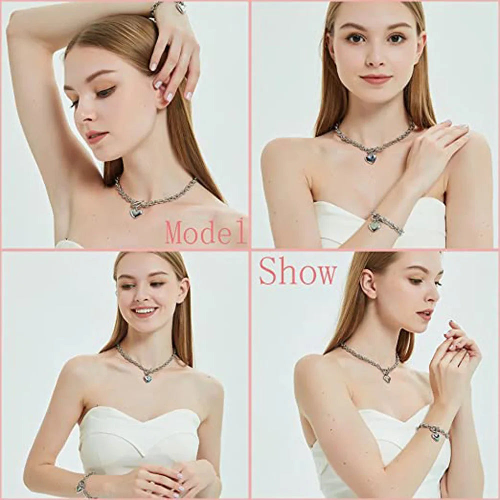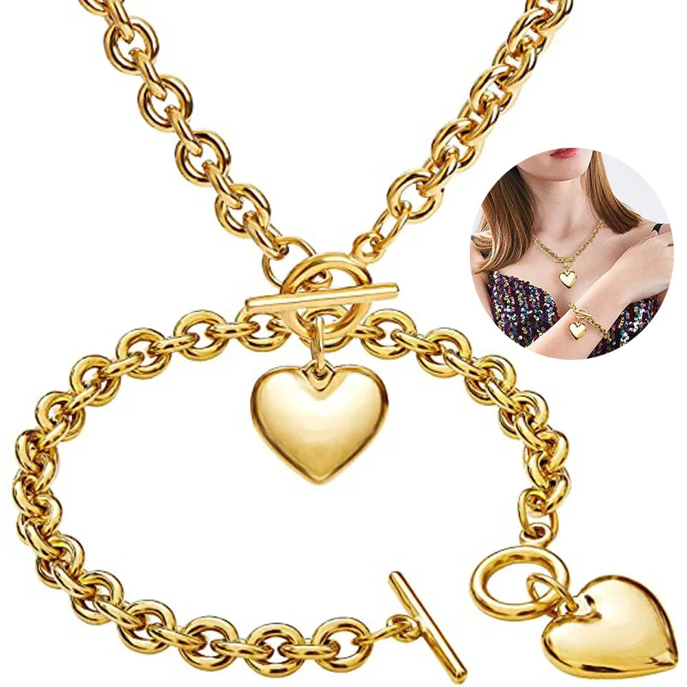 Love Heart Necklace and Bracelet Jewelry Sets for Women Gift Stainless Steel Engagement Wedding Party Chain Set Jewelry Fashion