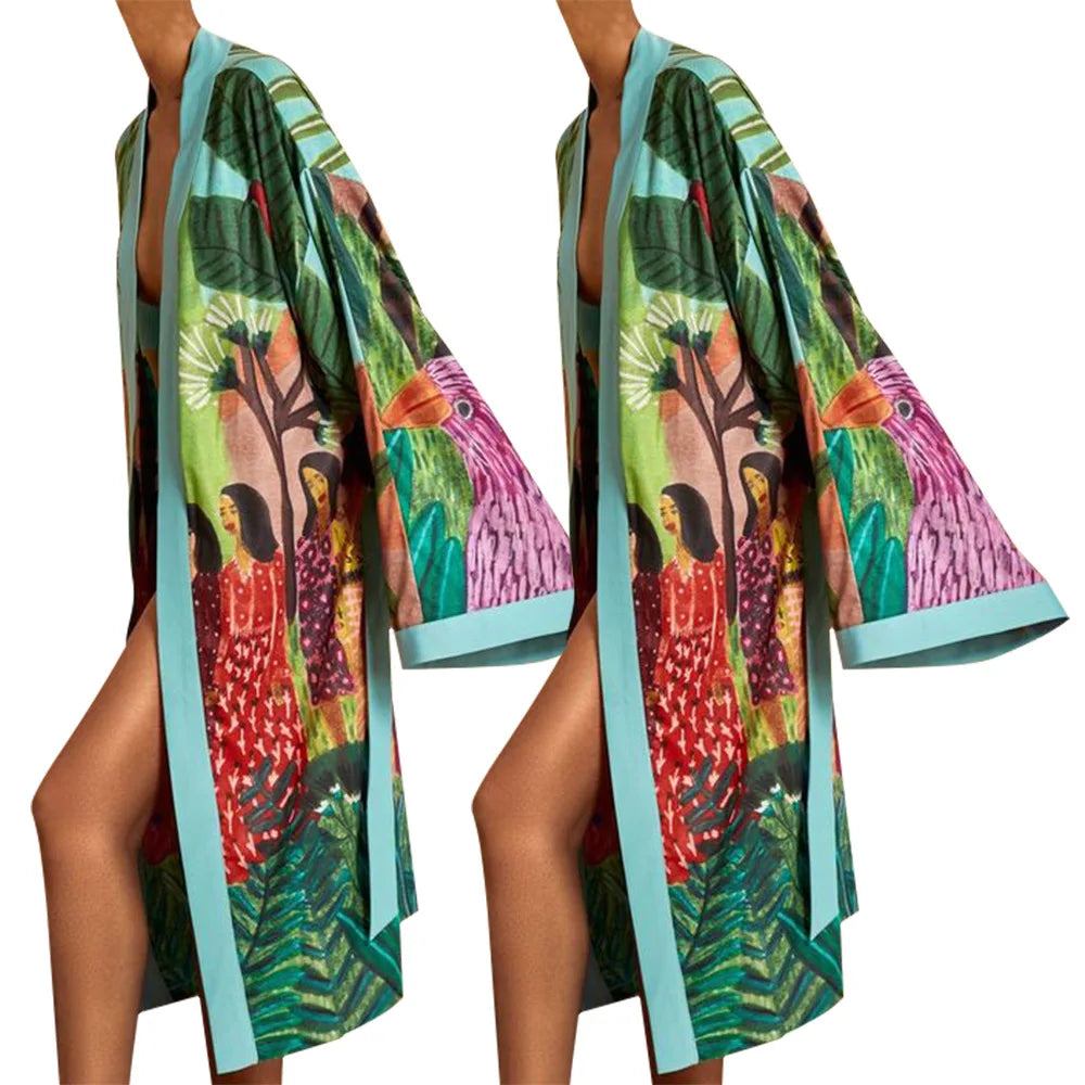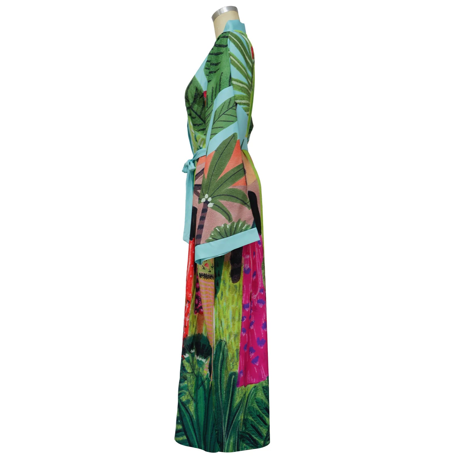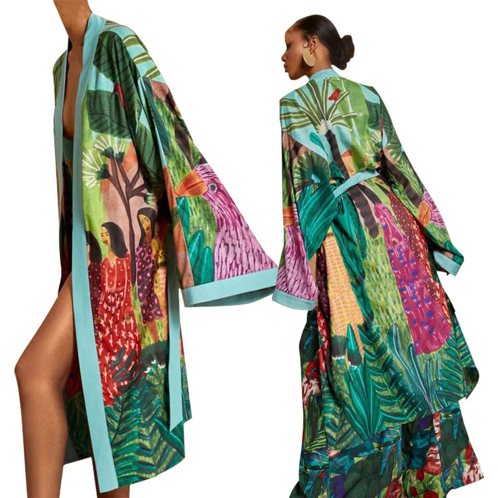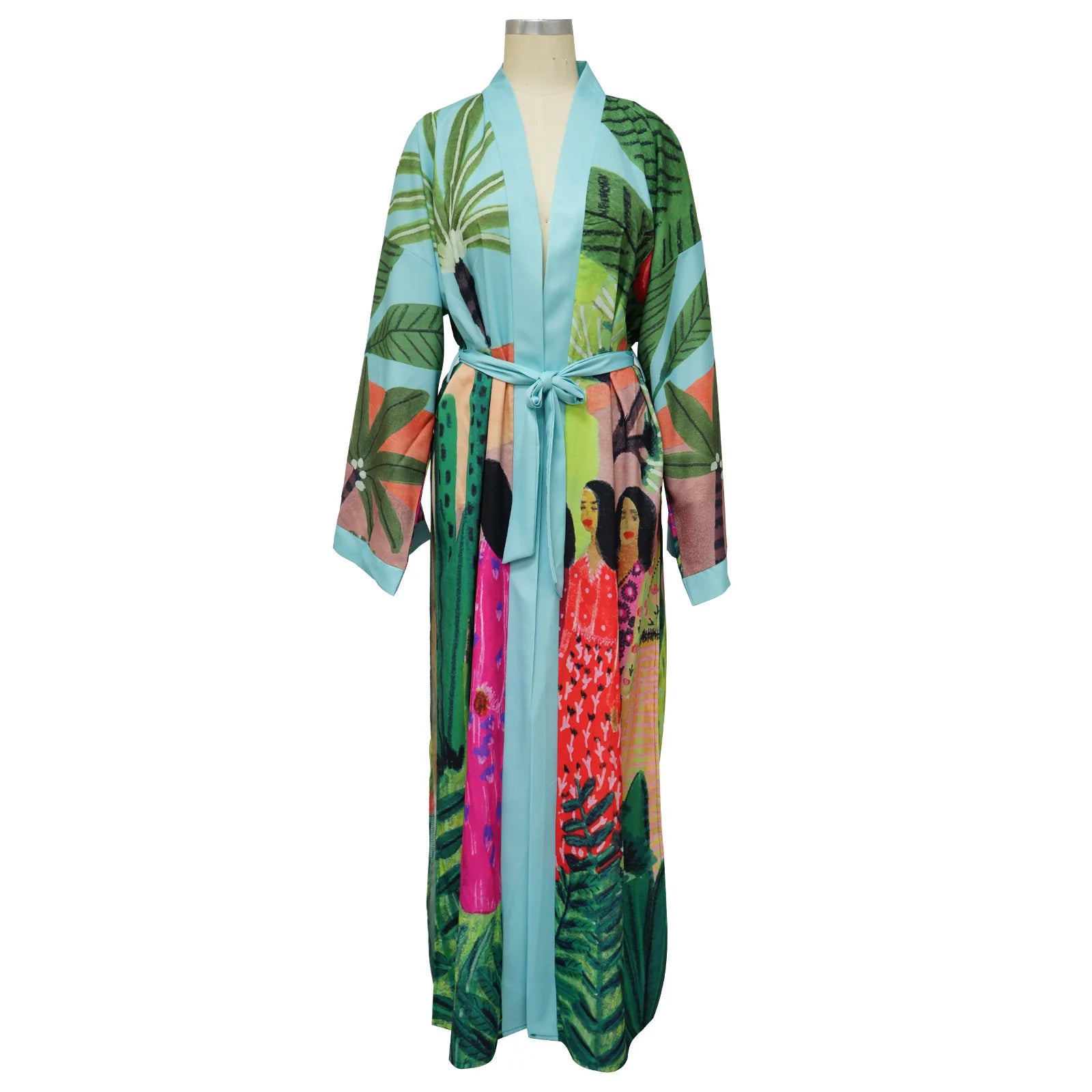 New Style Japanese Traditional Kimono Gown With Obi Popular Print Flower Pajamas Women Silk Large Size Bathrobe Yukata Dress