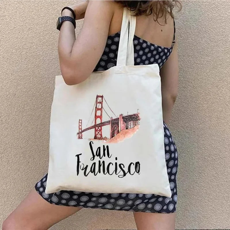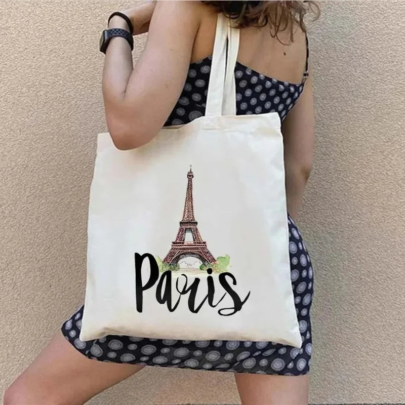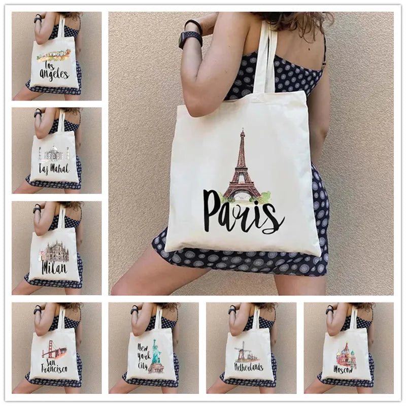 Paris Travel City Print Women Shoulder Bags Harajuku Canvas Shopping Bag Large Capacity Tote Handbag Reusable Eco Girl Handbags