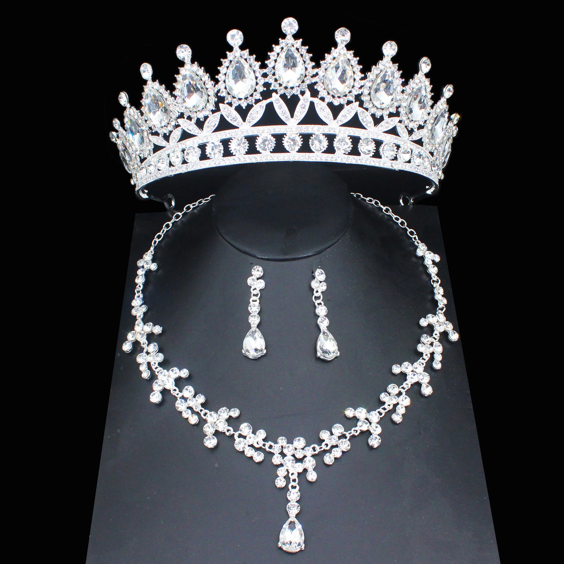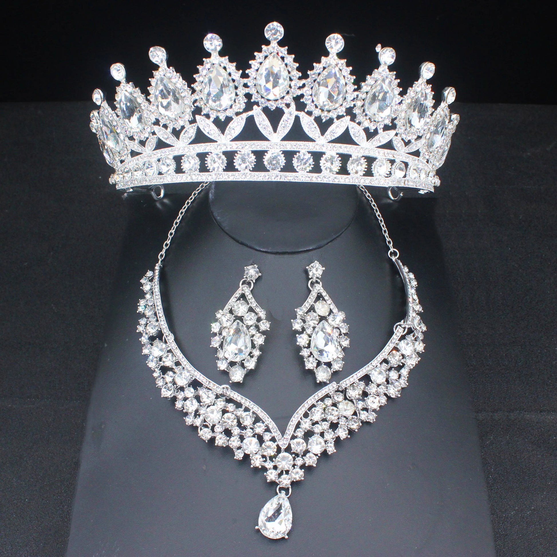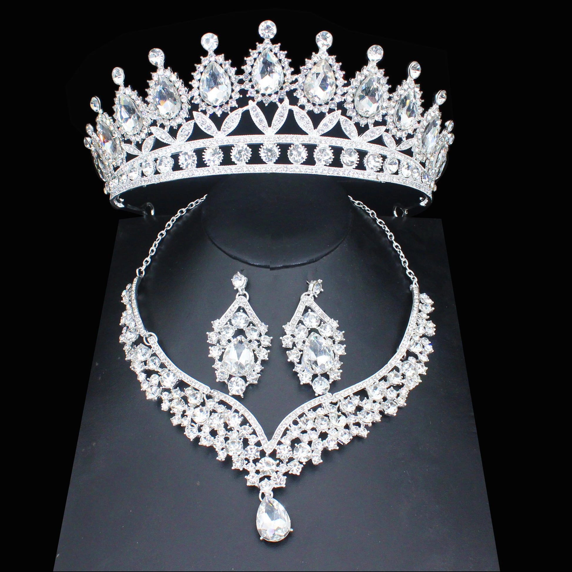 High Quality Fashion Crystal Wedding Bridal Jewelry Sets Women Bride Tiara Crowns Earring Necklace Wedding Jewelry Accessories