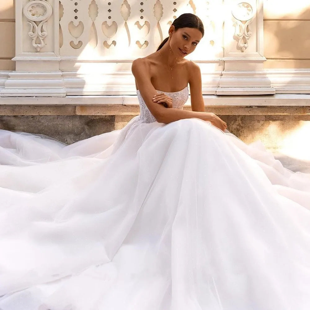 Sirene Boho Off The Shoulder Ball Gowns Wedding Dress 2025 Sleeveless Vintage Sequin Lace Appliques Tulle Bride Dress Customized