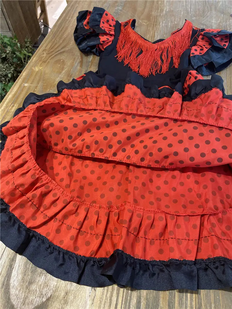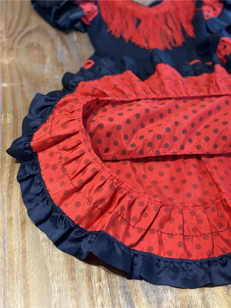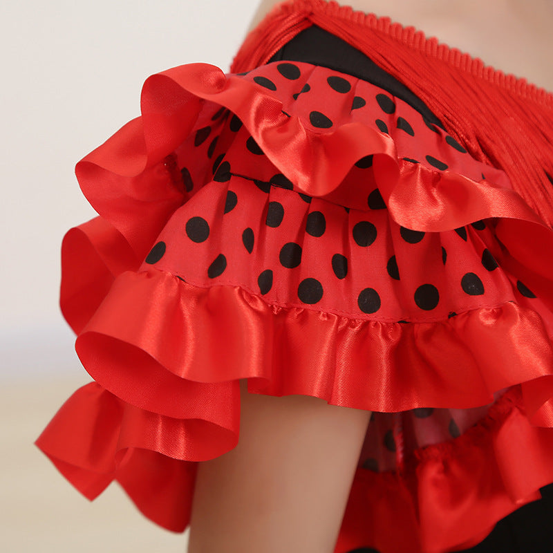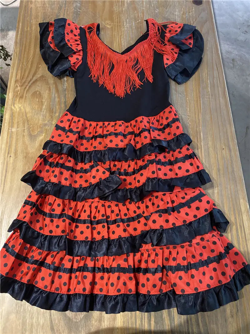 Traditional Spanish Flamenco Dance Dress For Girls Classic Flamengo Gypsy Style Skirt Bullfight Festival Mexican Girl Red