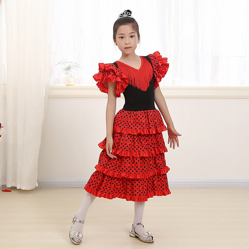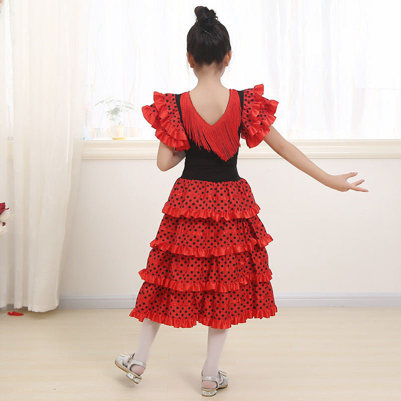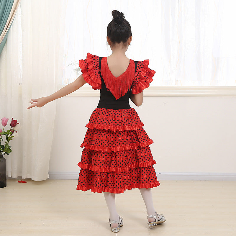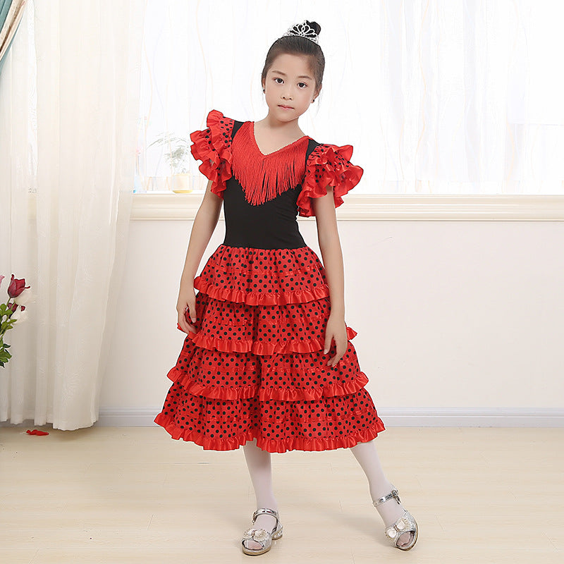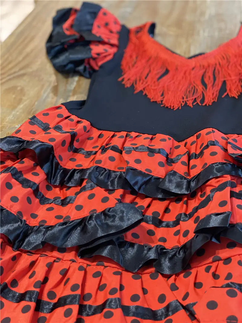 Traditional Spanish Flamenco Dance Dress For Girls Classic Flamengo Gypsy Style Skirt Bullfight Festival Mexican Girl Red