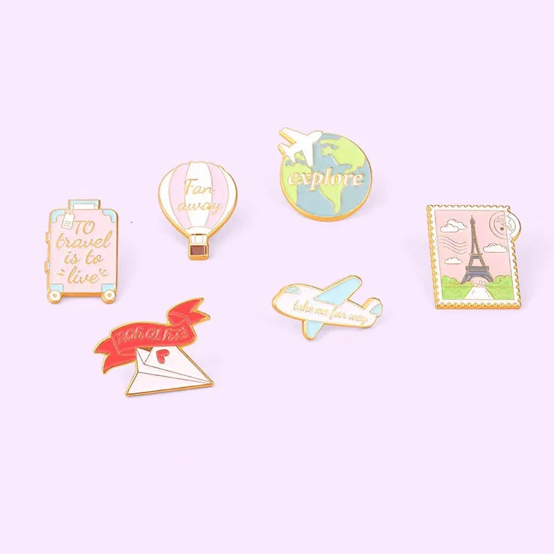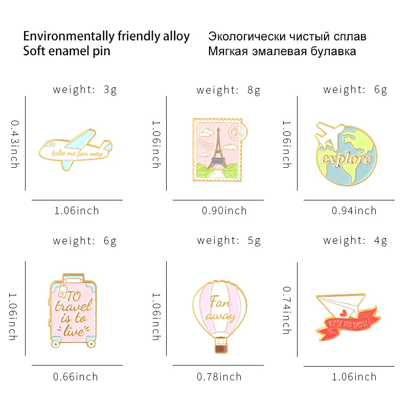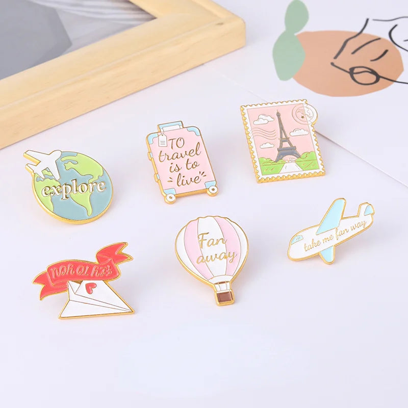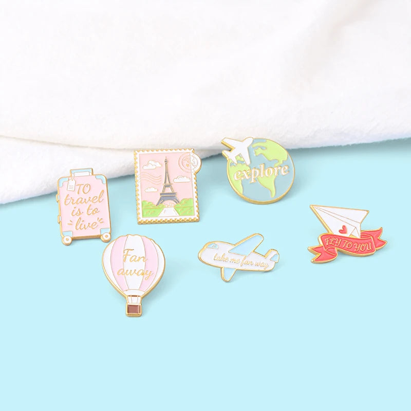 Traveling Quote Enamel Pin World Eiffel Tower Suitcase Brooches Clothes Badge Lapel Jewelry Gifts For Traveling Friend Wholesale
