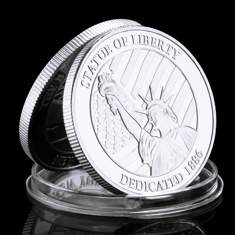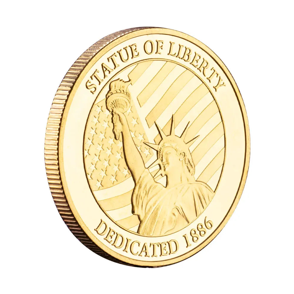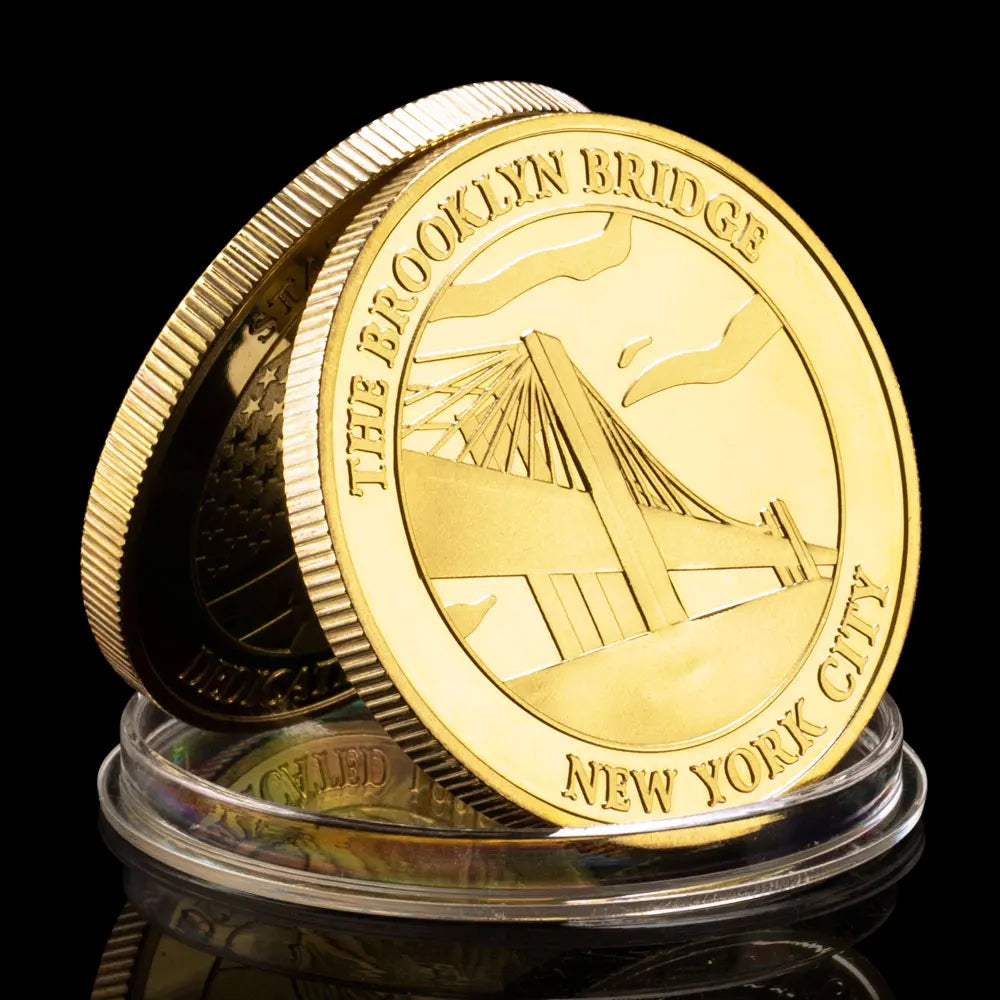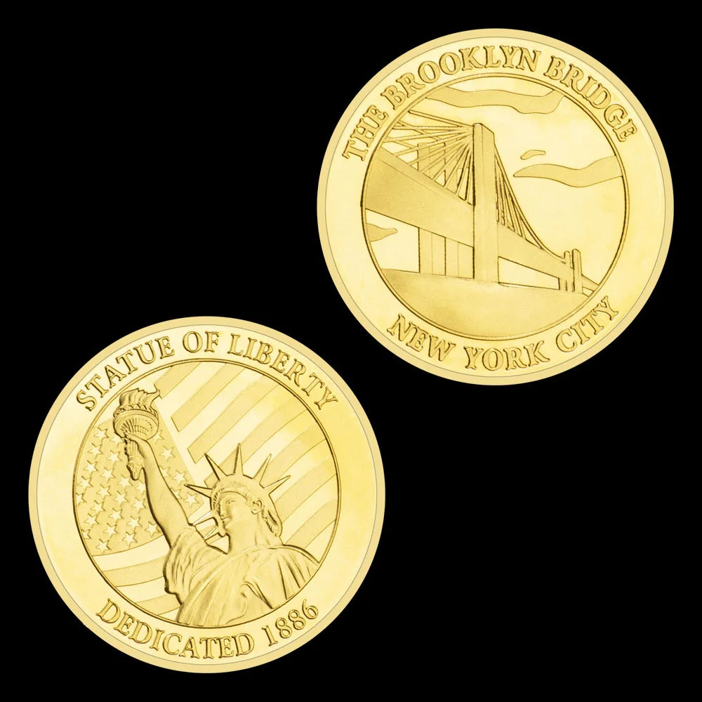 US Statue of Liberty Souvenir New York City The Brooklyn Bridge Pattern Golden Commemorative Coin Collectibles Liberty Coin