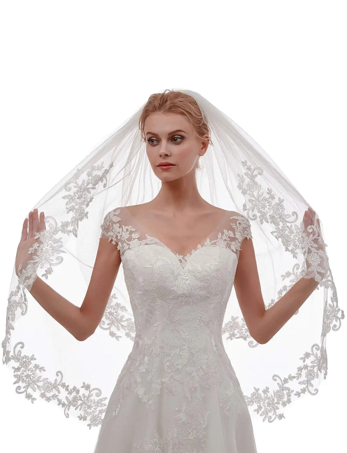 Women's Short 2 Tier Lace Wedding Bridal Veil With Comb